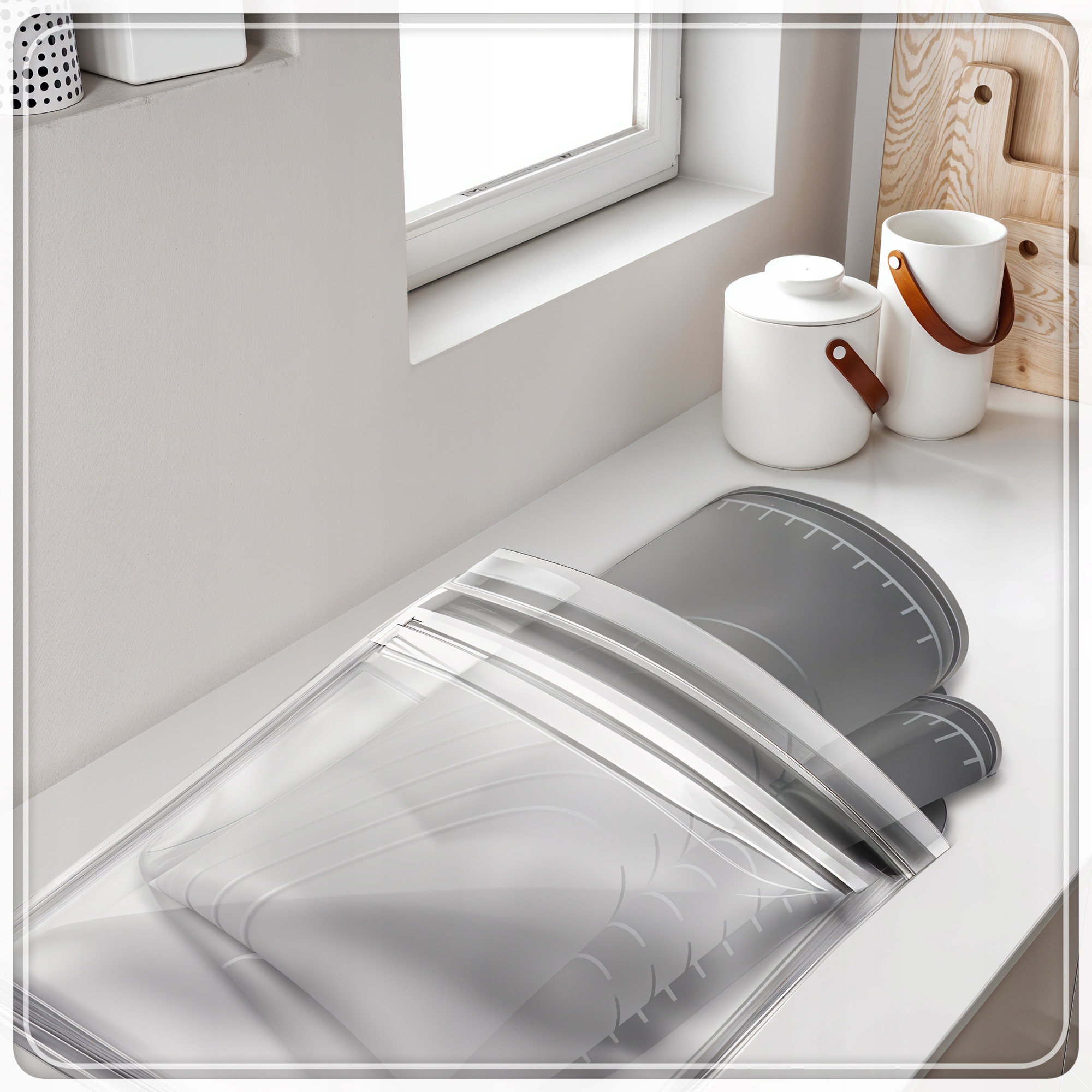 ☑ доска 70x50 см b> обеспечивает удобное прокатное пространство, замесив и образуя тесто. Его поверхность не движется на стойке, что увеличивает комфорт работы. Силиконовый край останавливает разбросанные ингредиенты по краям и предотвращает утечки, благодаря которого вы будете чистыми на кухонном столе. Шкала на доске позволяет точно прокатиться до желаемых измерений. Материал не поглощает запахи и легко чистить . Это практическое и современное решение для каждой кухни.