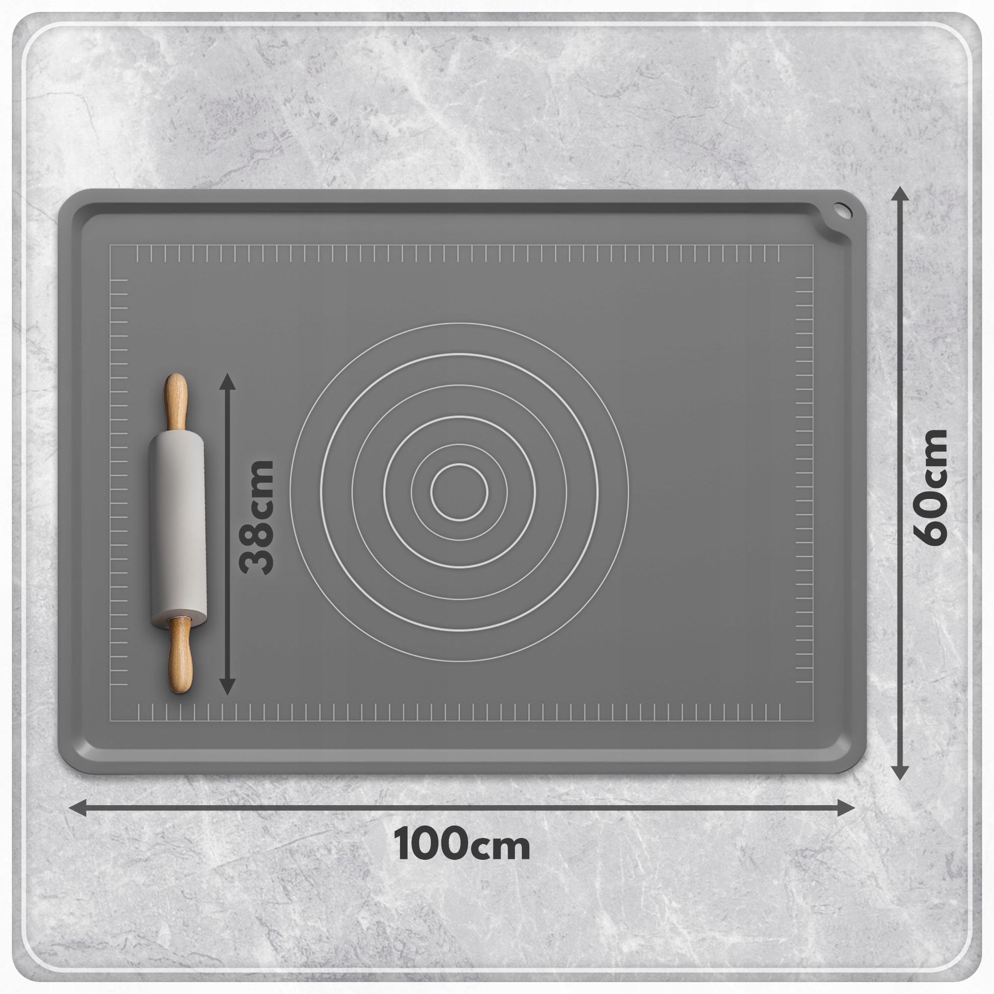 ☑ a платы 100x60 см b> обеспечивает удобное прокатное, замесительное и тесто. Его поверхность не движется на стойке, что увеличивает комфорт работы. Силиконовый край останавливает разбросанные ингредиенты по краям и предотвращает утечки, благодаря которого вы будете чистыми на кухонном столе. Шкала на доске позволяет точно прокатиться до желаемых измерений. Материал не поглощает запахи и легко чистить . Это практическое и современное решение для каждой кухни.