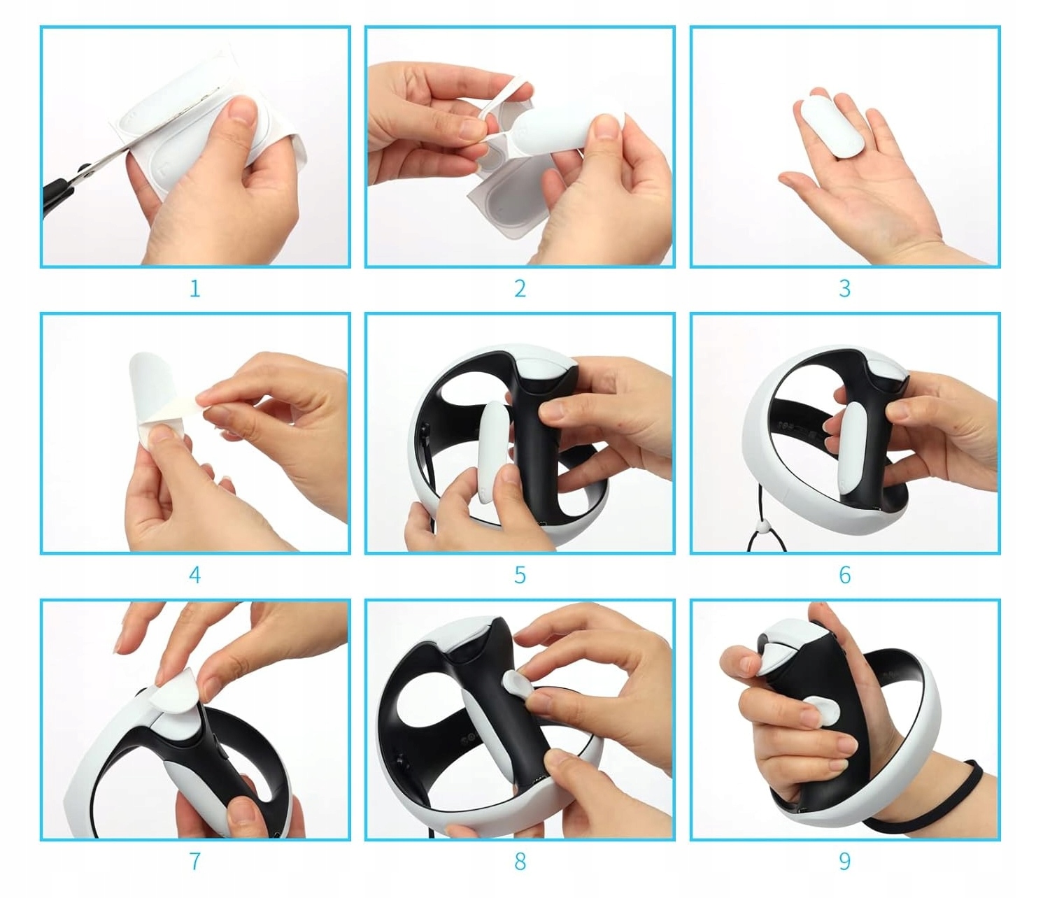 Простая установка — не требуются инструменты или остатки клея! Просто снимите наклейку с силикагелем, совместите ее с соответствующим положением контроллера и прикрепите, слегка надавив.