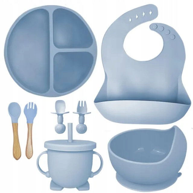 Силіконовий посуд для немовлят Набір Тарілка Миска Столові прибори Нагрудник 8 предметів