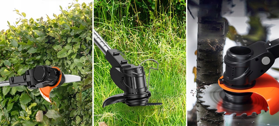 - 🍀 , оснащенные 3 типами лезвий, пластиковые лезвия подходят для деликатной травы, лезвия из нержавеющей стали подходит для сложной местности, сорняков, увязывания и густой травы и т. Д. Диски подходят для разрезания хлопьев, кустарников, ветвей и т. Д.