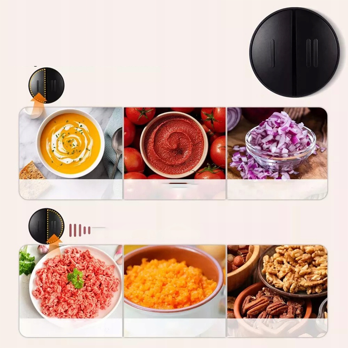 Мощный двигатель 300 Вт: этот электрический удар оснащен твердым двигателем 300 Вт и предлагает высокую мощность обработки, что позволяет быстро и легко нарезать и смешивать ингредиенты. Производительность двигателя позволяет быстро приготовить еду и ограничить время, проведенное на кухне. Независимо от того, готовите ли вы сальсу, соусы или арахисовое масло, мощный двигатель обеспечивает постоянную и надежную работу.