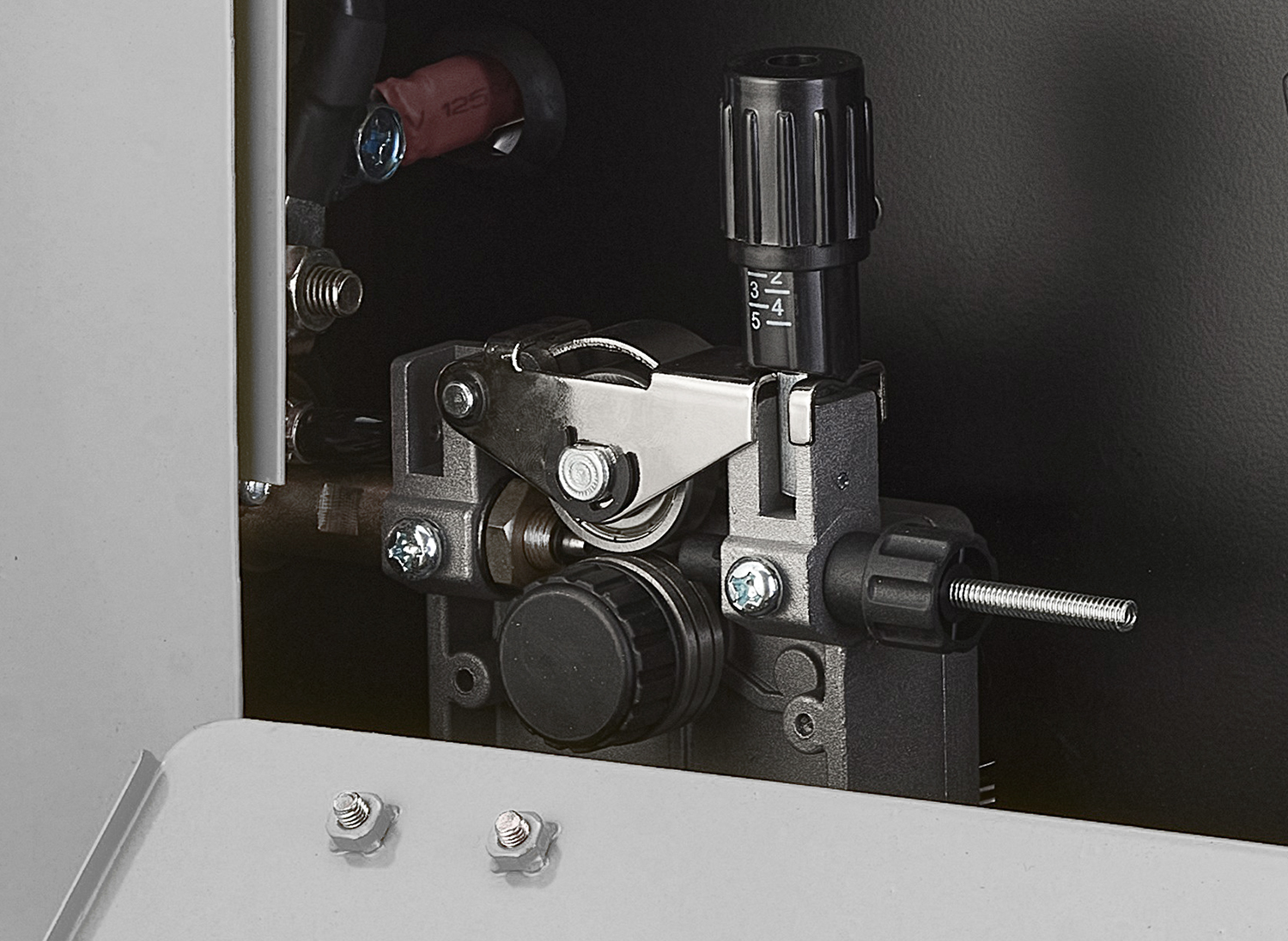 Регулировка параметров сварки принимает беспроблемную (гладкую), максимальный сварки зависит от толщины провода / электрода , напряжения сварки, а также скорости введения провода в случае метода mig / mag / fcaw . Двухцветный фидер работает с проводом диаметром 0,6 / 0,8 / 1,0 мм.