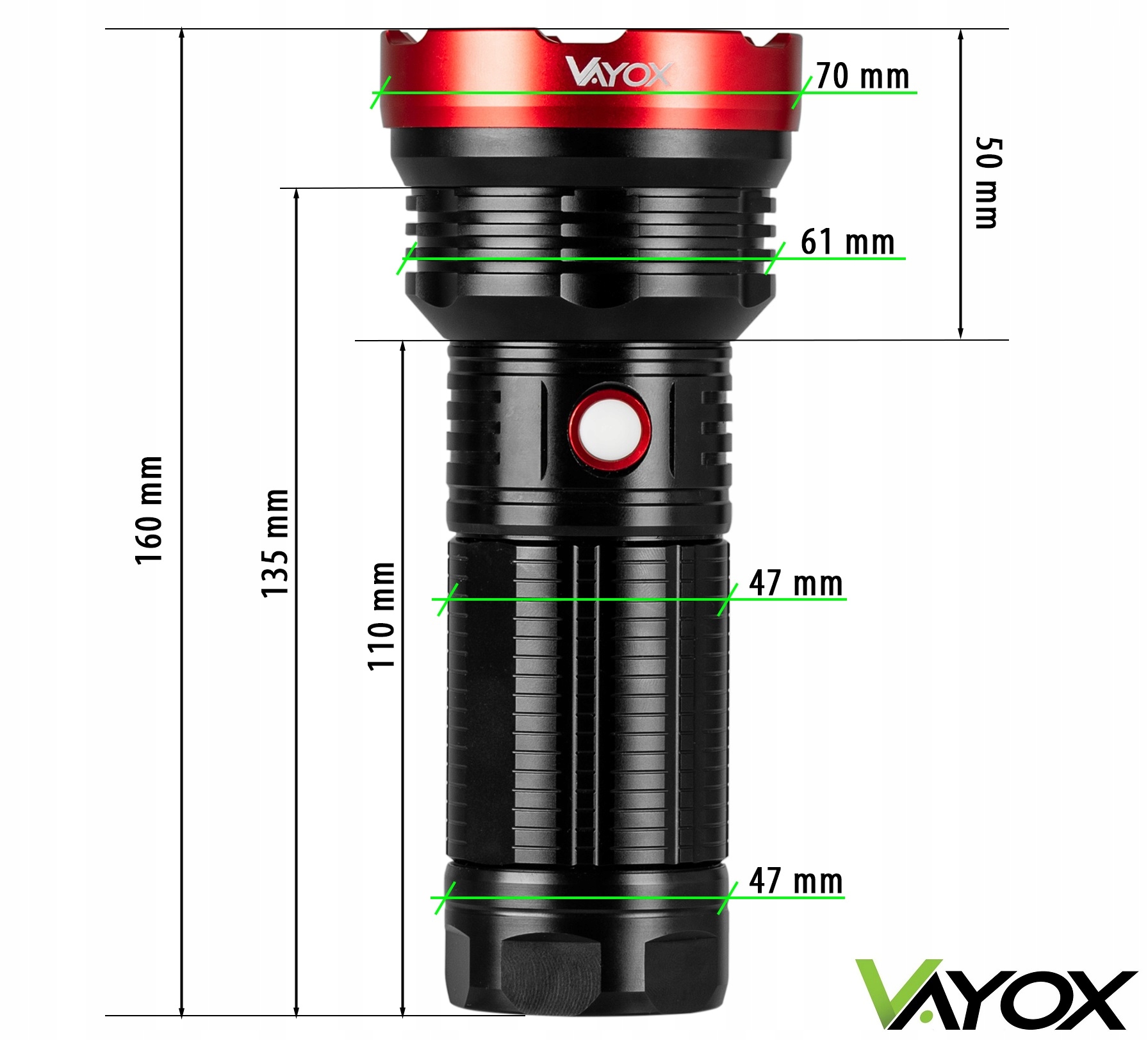 В модели VA0110 использовалась система быстрого зарядки через USB-C (5V/2A), прикрепленную к набору. Фонарик может быть заряжен тем же зарядным устройством, что и мобильный телефон, поэтому вы можете заряжать его как дома, так и, например. в поездке.
