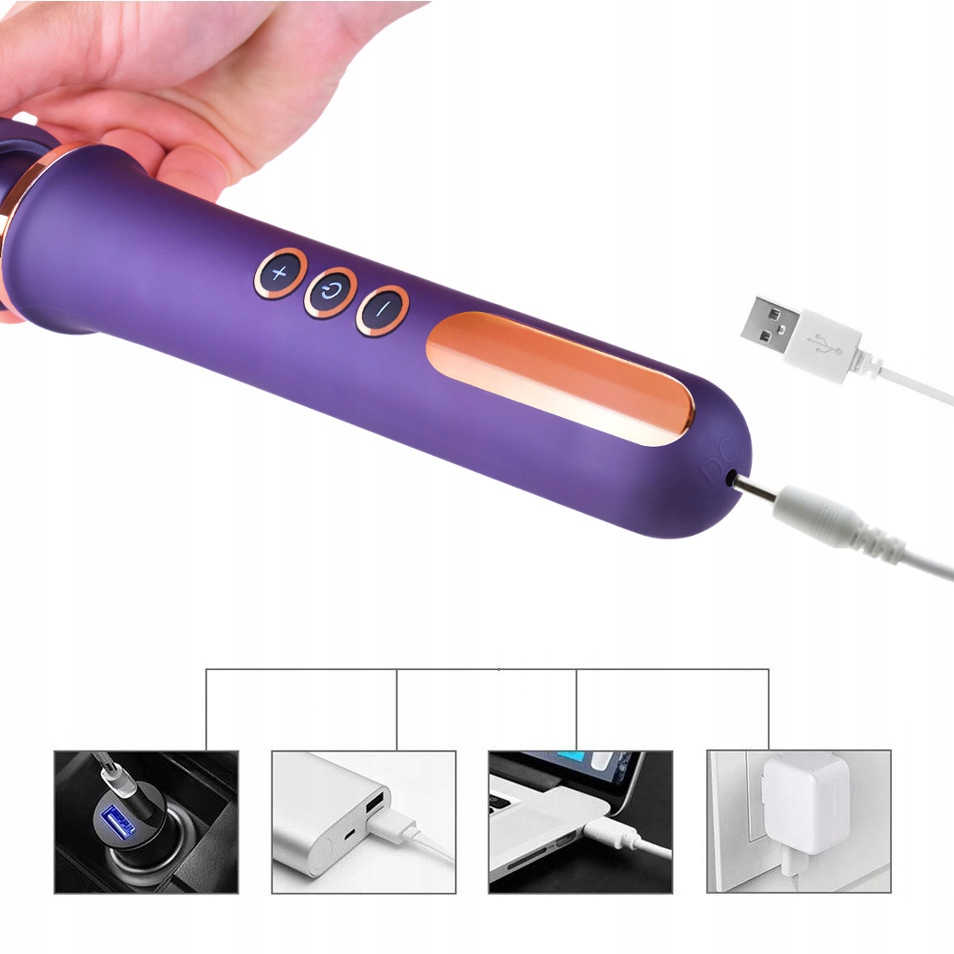 Массажер имеет встроенный аккумулятор и USB-кабель, который входит в комплект, можно подключить к Powerbank, USB-порту компьютера, настенному зарядному устройству USB или автомобильному зарядному устройству USB. Лучше всего использовать зарядное устройство с напряжением питания до 3,7В и мощностью до 1000 мАч (1А).