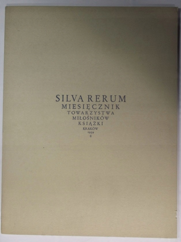 Silva rerum Nr 8, 1939, ŚLĄSK, ŚLĄSKIE WYDAWNICTWA