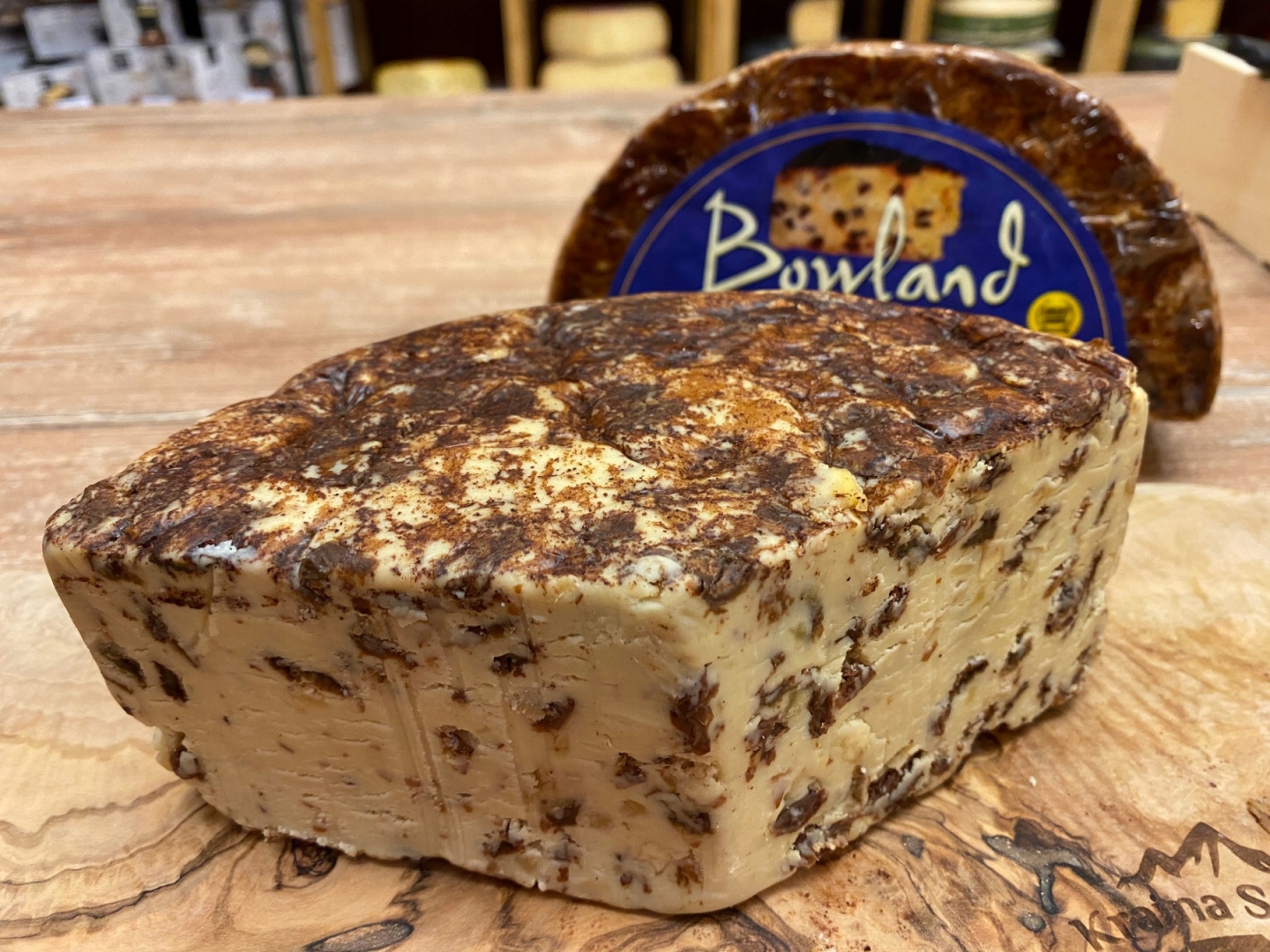 Боуланд - это тип сыра Ланкашира, в котором до того, как он смешивается с яблоком, изюмом и корицей.