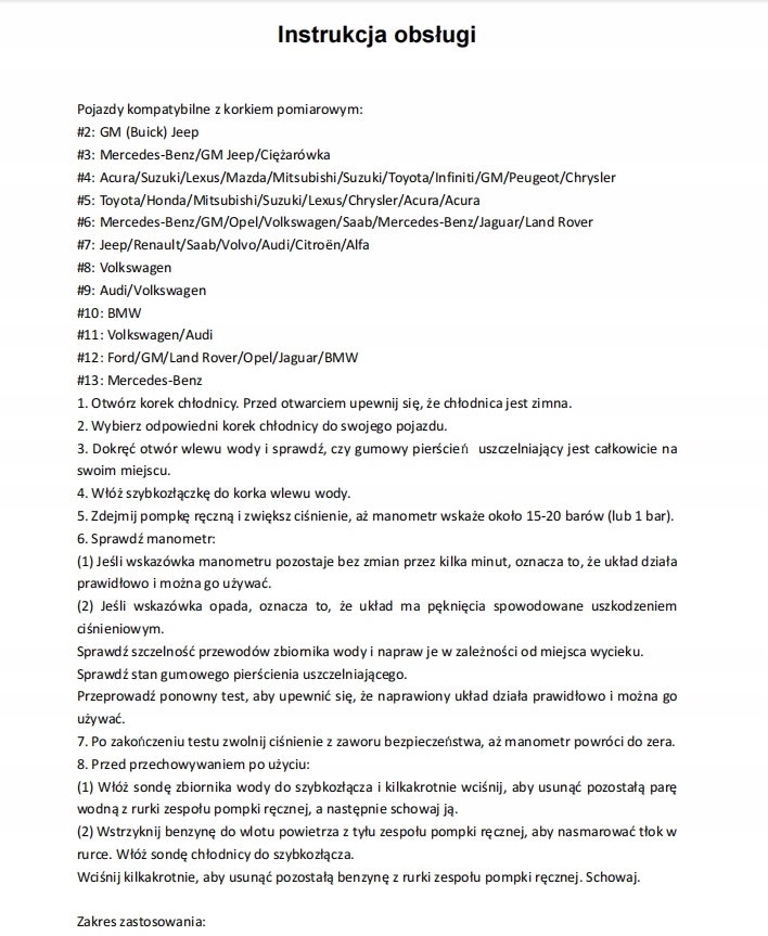 Измерение давления в радиаторе содержит 13 различных инфузионных пробных зарослей. 3 Хромированные стальные адаптеры предназначены для грузовиков, а 10 адаптеров из анодированного алюминия предназначены для легковых автомобилей. Следует помнить, что набор не совместим с расширением бака BMW E46.