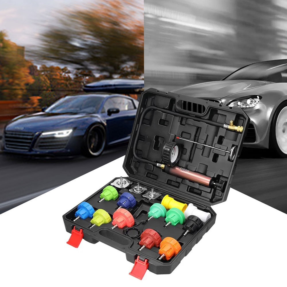 Набор инструментов для обнаружения утечек резервуара для воды идеально подходит для обнаружения внутренних и внешних утечек цилиндра, а также для обнаружения повреждения прокладки головы, чтобы определить, какая сторона блокируется или какая утечка коллектора. Регулярная проверка стеснения с помощью этого инструмента позволяет избежать проблем, связанных с снижением температуры охлаждающей жидкости и температуры кипения, таких как высокая температура двигателя, низкая вязкость масла и другие серьезные проблемы.