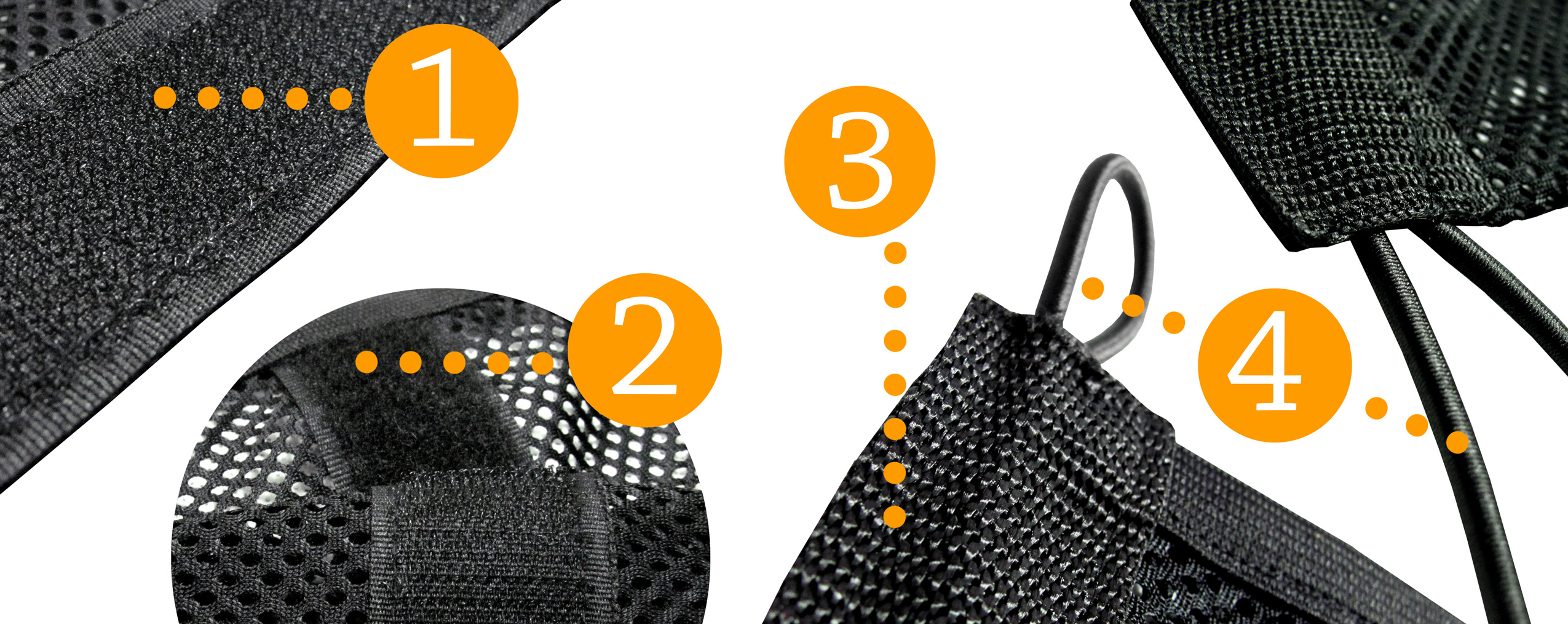 <р>1. Нижняя стабилизирующая лента сетки 2. Прочная липучка, разделяющая камеры 3. Усиленная краевая лента 4. Монтажные тросы