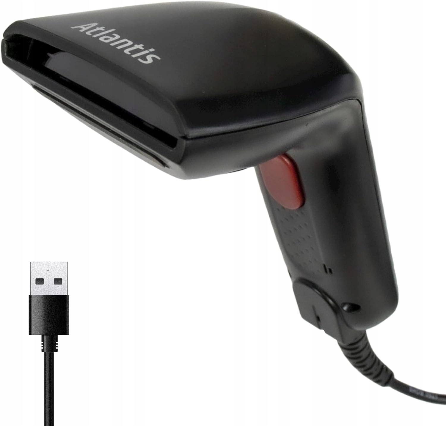 Atlantis A08-C100 Сканер штрих-кода Сканер штрих-кода 1D оптический контакт, 120 секунд сканирования, считывание со смартфона, фармацевтический код, USB-порт