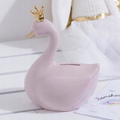 Функция копилки также делает это невероятно милое изделие очень практичным. Его можно использовать для сбора и накопления денег на вещи мечты или для достижения других целей. Благодаря этой копилке мелкие деньги не потеряются и копить станет гораздо приятнее. Золотая корона и лебединый клюв делают изделие еще более эффектным и стильным. Нежный цвет копилки делает ее отличным украшением любого интерьера.