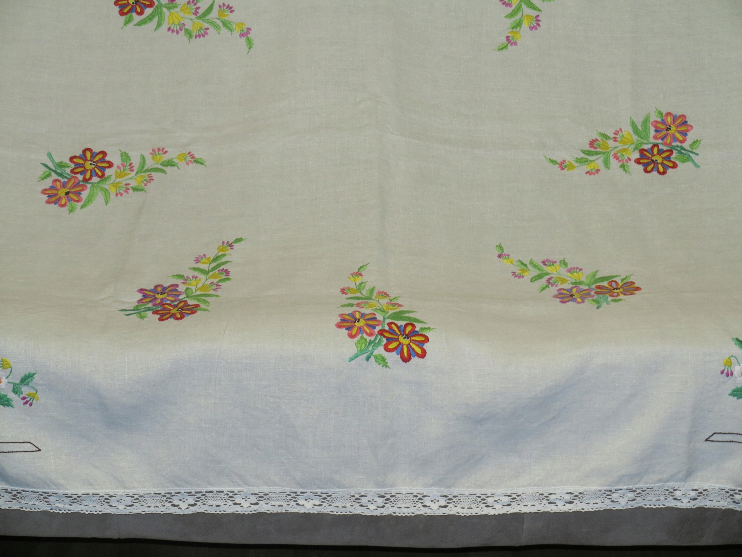 АНТИКВА - КРАСИВАЯ ВЕКОВАЯ ЛЬНЯНАЯ СКАТЕРТЬ С БОГАТОЙ ВЫШИВКОЙ РУЧНОЙ РАБОТЫ - ПОЛЕВЫЕ ЦВЕТЫ. ОЧЕНЬ Сложная, трудоемкая ручная работа.