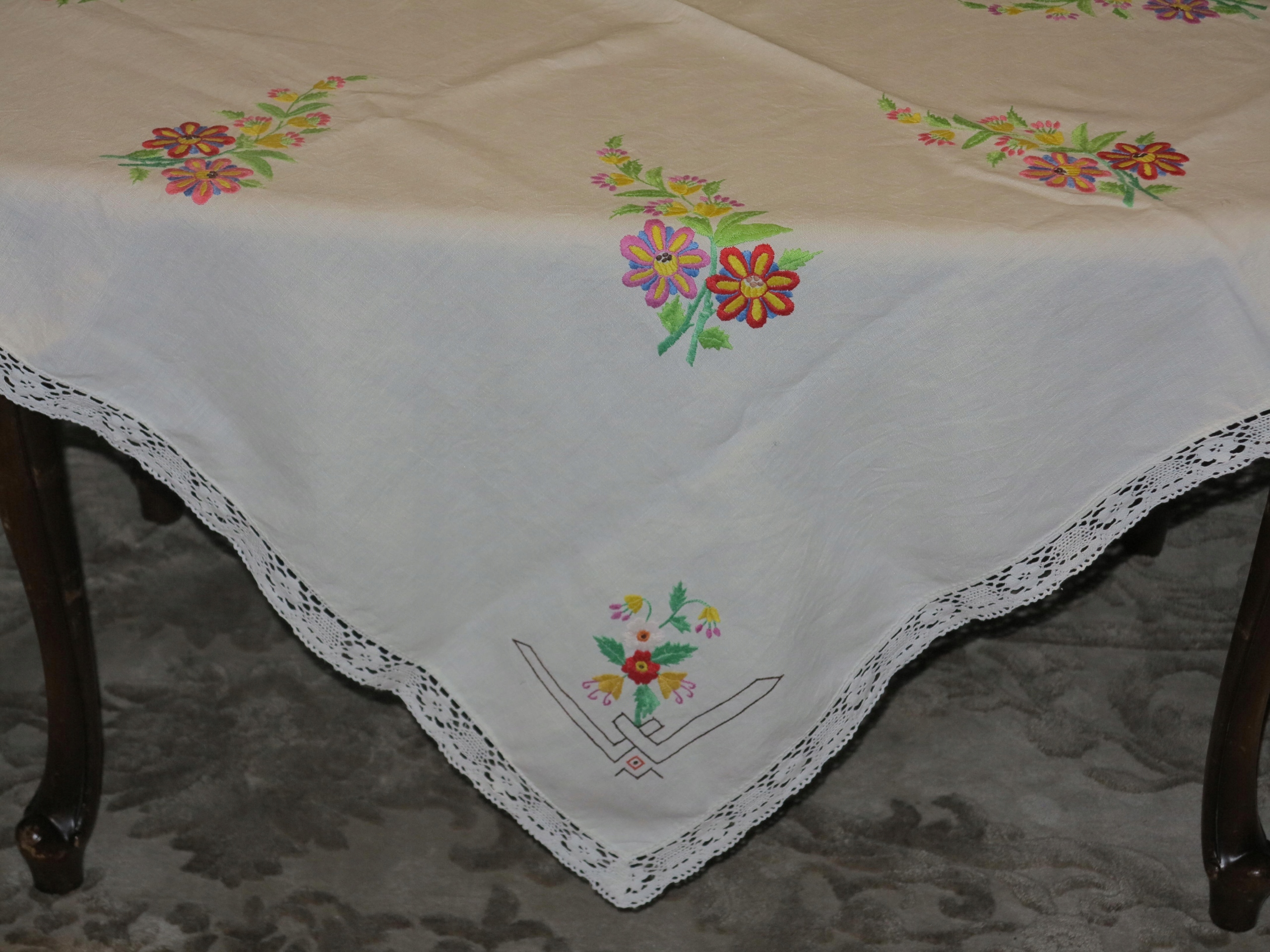 Предметом аукциона является старинная состаренная льняная скатерть, полностью изготовленная вручную с вышивкой крестиком. Скатерть отделана широким коклюшным кружевом. Его размеры с кружевом: 130/124см. Скатерть б/у, но в очень хорошем состоянии и качестве, несмотря на свой возраст.Рекомендую