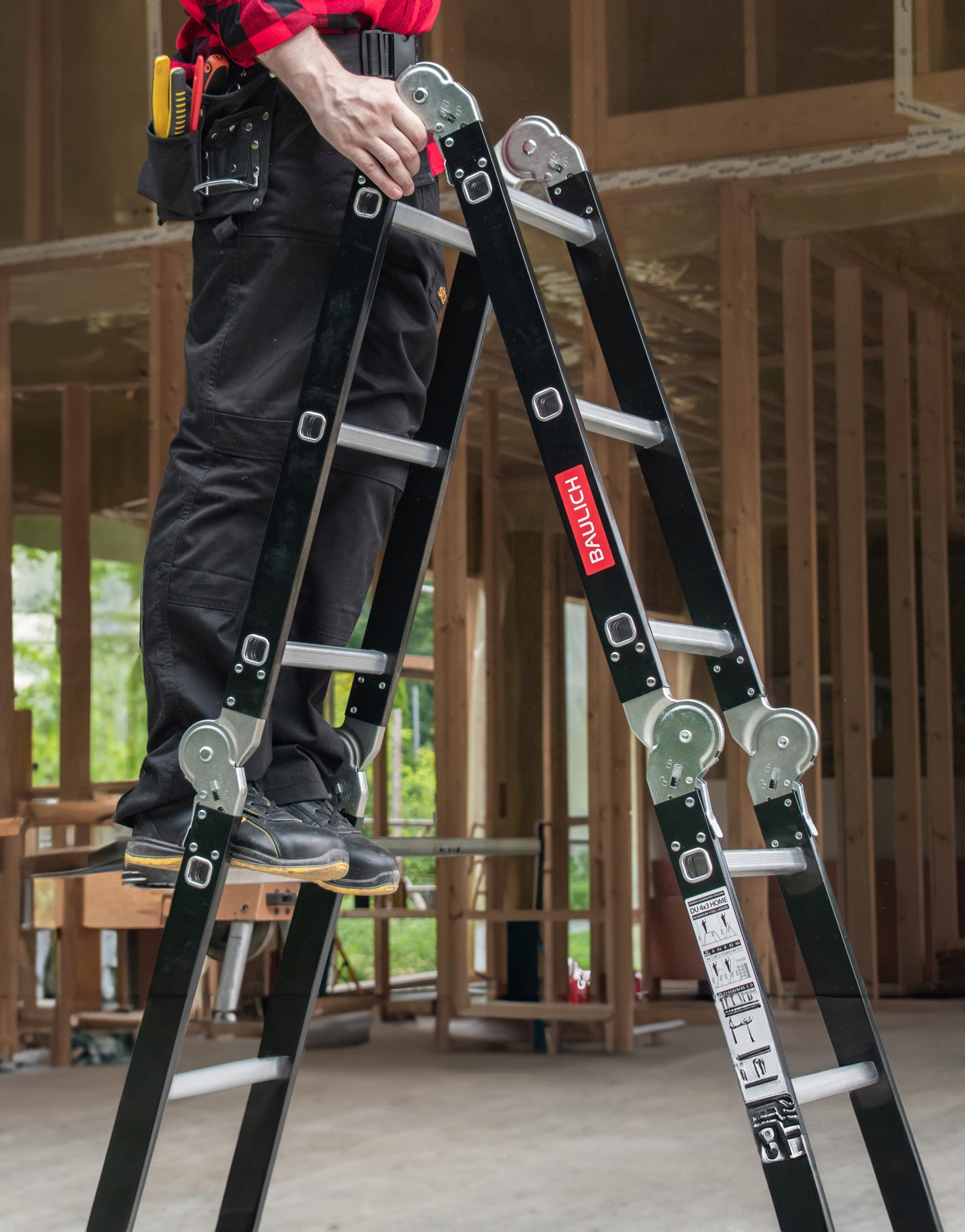 надежный механизм блокировки суставов с самостоятельными петлями позволяет легко использовать лестницу.