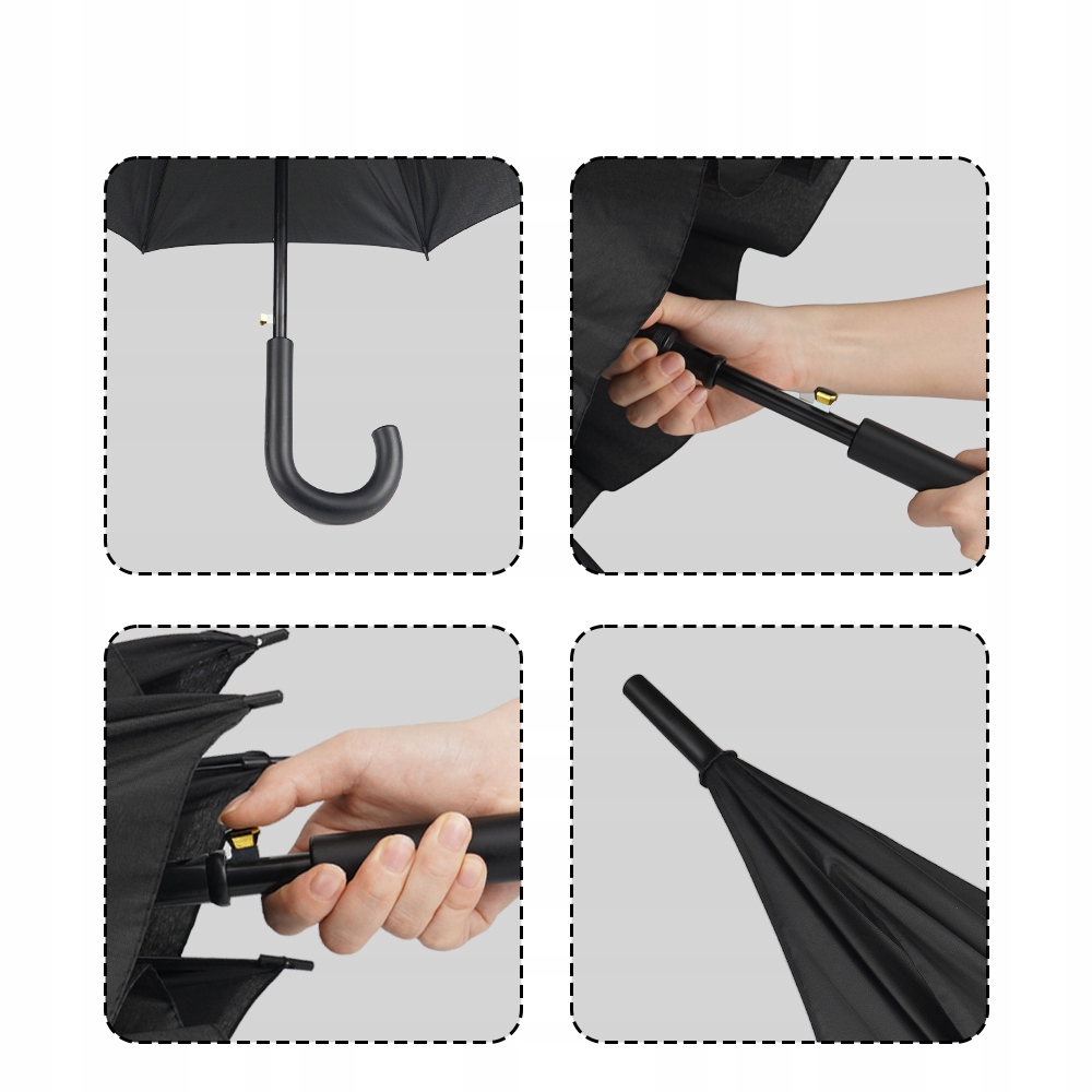 , оборудованное круглой ручкой с крючком, зонт можно легко подвешивать для сушки и хранения, когда они не используются, что увеличивает ее практичность.