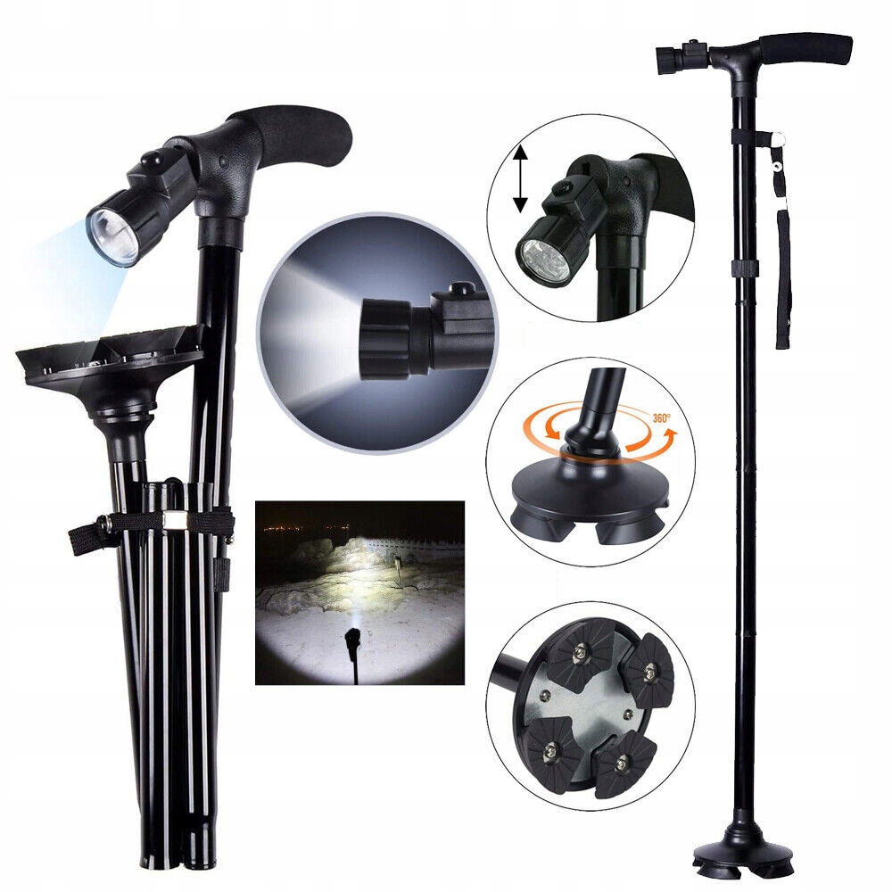 , складывается за несколько секунд, свет состоит из небольших размеров, благодаря тому, что в сумке. Анодированный алюминиевый корпус обеспечивает максимальную безопасность с нагрузкой до 250 фунтов. Эргономичный, легкий дизайн в сочетании с регулируемыми уровнями высоты делает его идеальным компаньоном прогулок и поддержки.