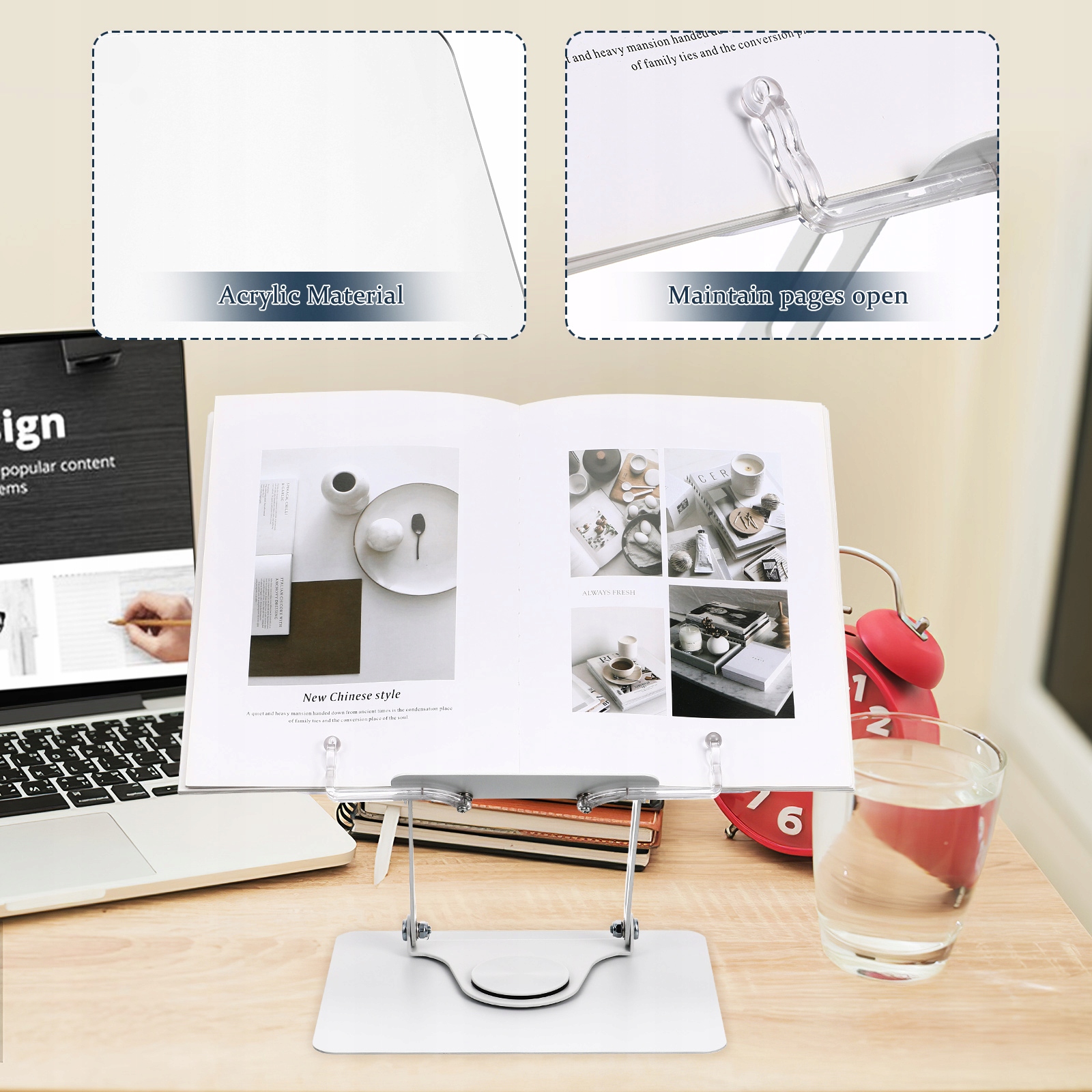 ✅akrylic Книга Возможность с ротацией 360 °, вращающимися складными книжными держателями, рецептами и ноутбуком, поднимает до 5 кг, прозрачный, стильный, эргономичный дизайн h2>