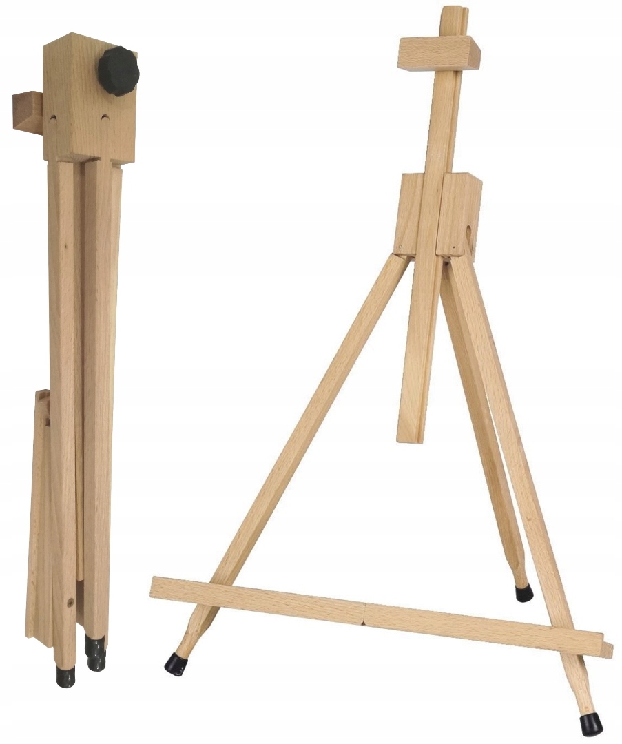 Мольберт изготовлен из очень эстетичного, с вниманием к деталям и качеству отделка отдельных элементов очень функциональна и устойчива. Концы ножек обработаны защитой, позволяющей устойчиво удерживать землю и не царапать деликатные поверхности.