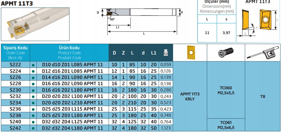 складная головка резака Fi 16x90 z2 apmt 11t3 с внутренним охлаждением Teknik S228-1