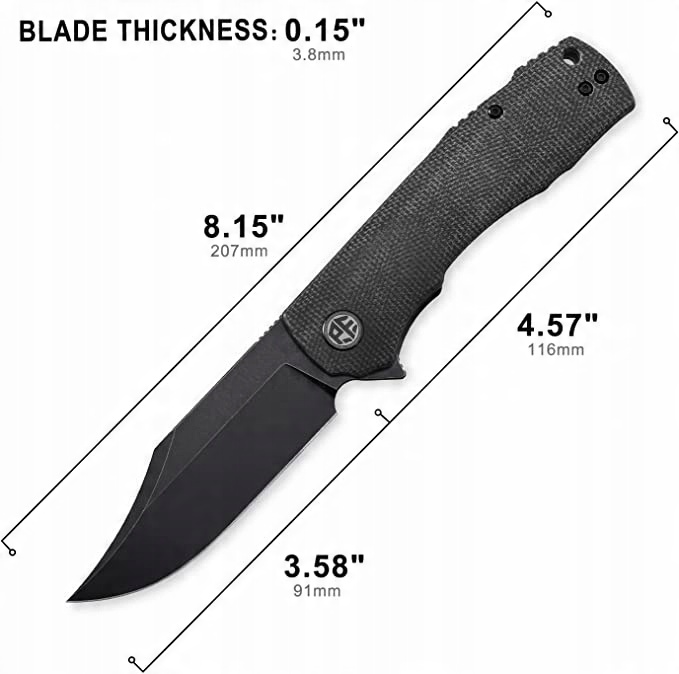 Flascess Fland с приводом по флеву, он сделал z Сталью K110 , правильное упрочнение которого обеспечивает длительное внимание, а также позволяет легко заточить нож. Нож имеет клип благодаря, на что мы можем безопасно перемещать его в наш карман.