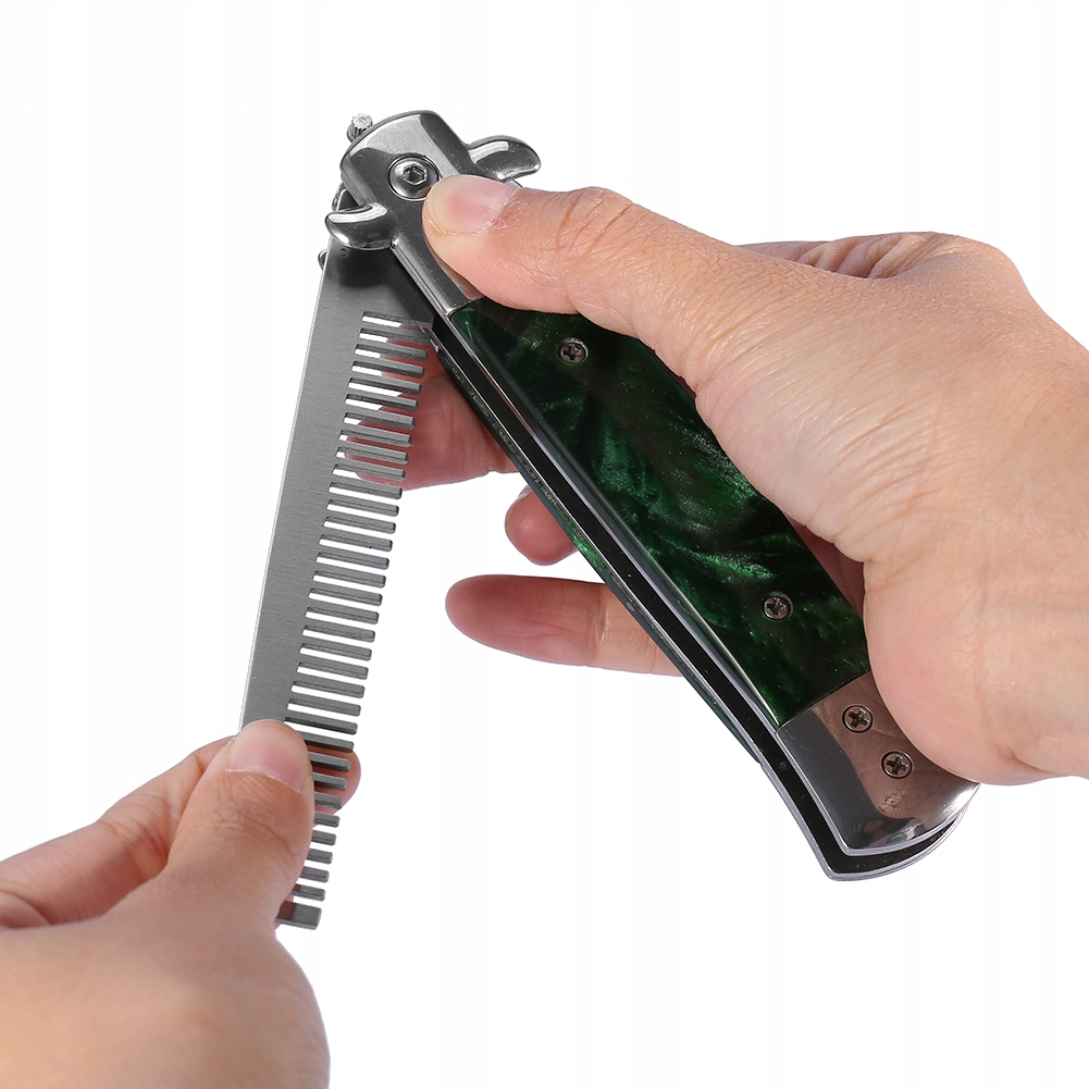 1 шт. Весенний лезвие из нержавеющей стали, кармана, расческа для волос с маслом, складная кисточка для укладки волос (зеленая)