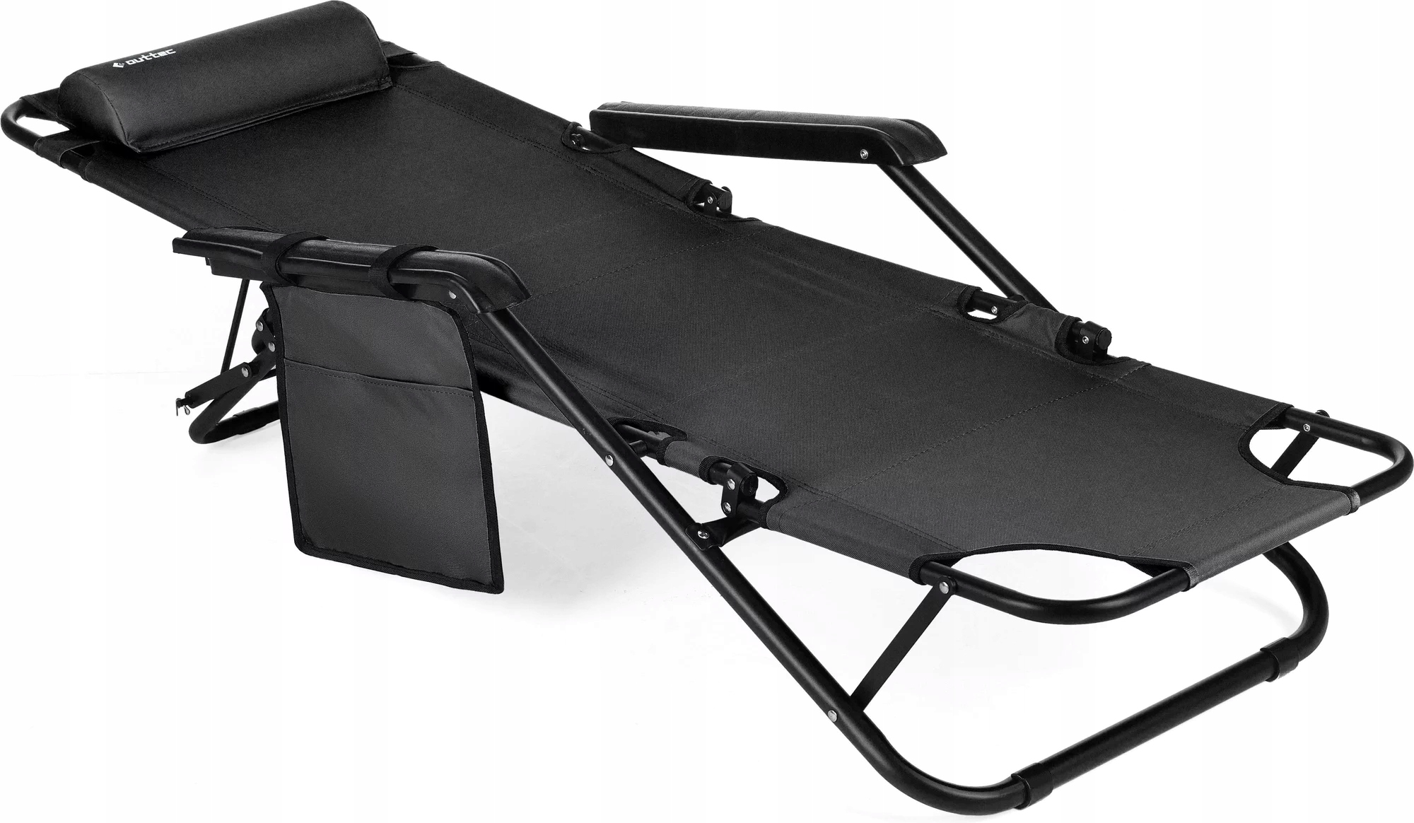 Складная конструкция и небольшой вес (менее 5 кг) делают шезлонг удобным в транспортировке и хранении. Регулируемая спинка и ножная секция позволяют принять одно из двух положений. В распоряжении пользователя есть стул или кровать. Комфорт отдыха на свежем воздухе повышается за счет эргономичного съемного чехла и фигурных подлокотников.