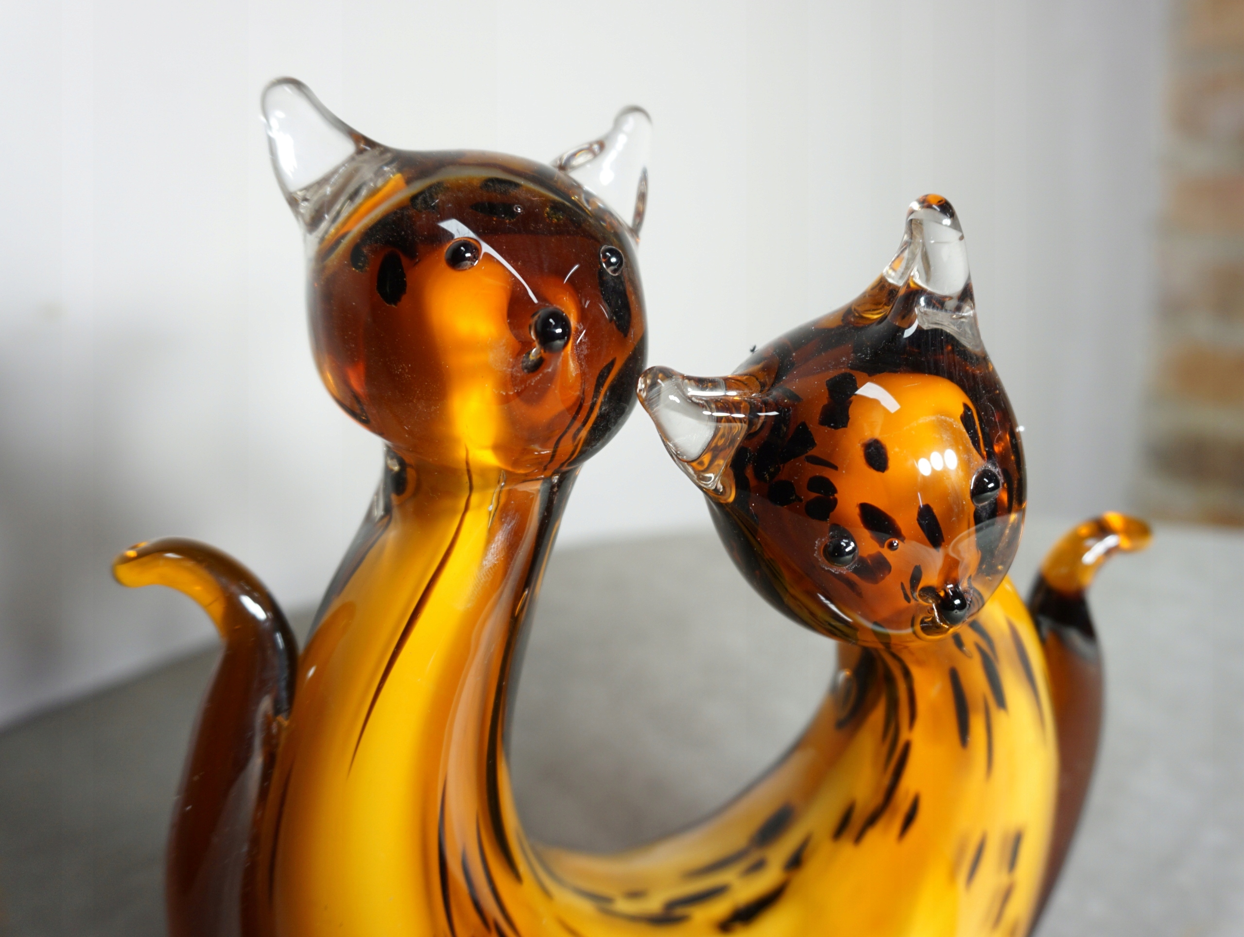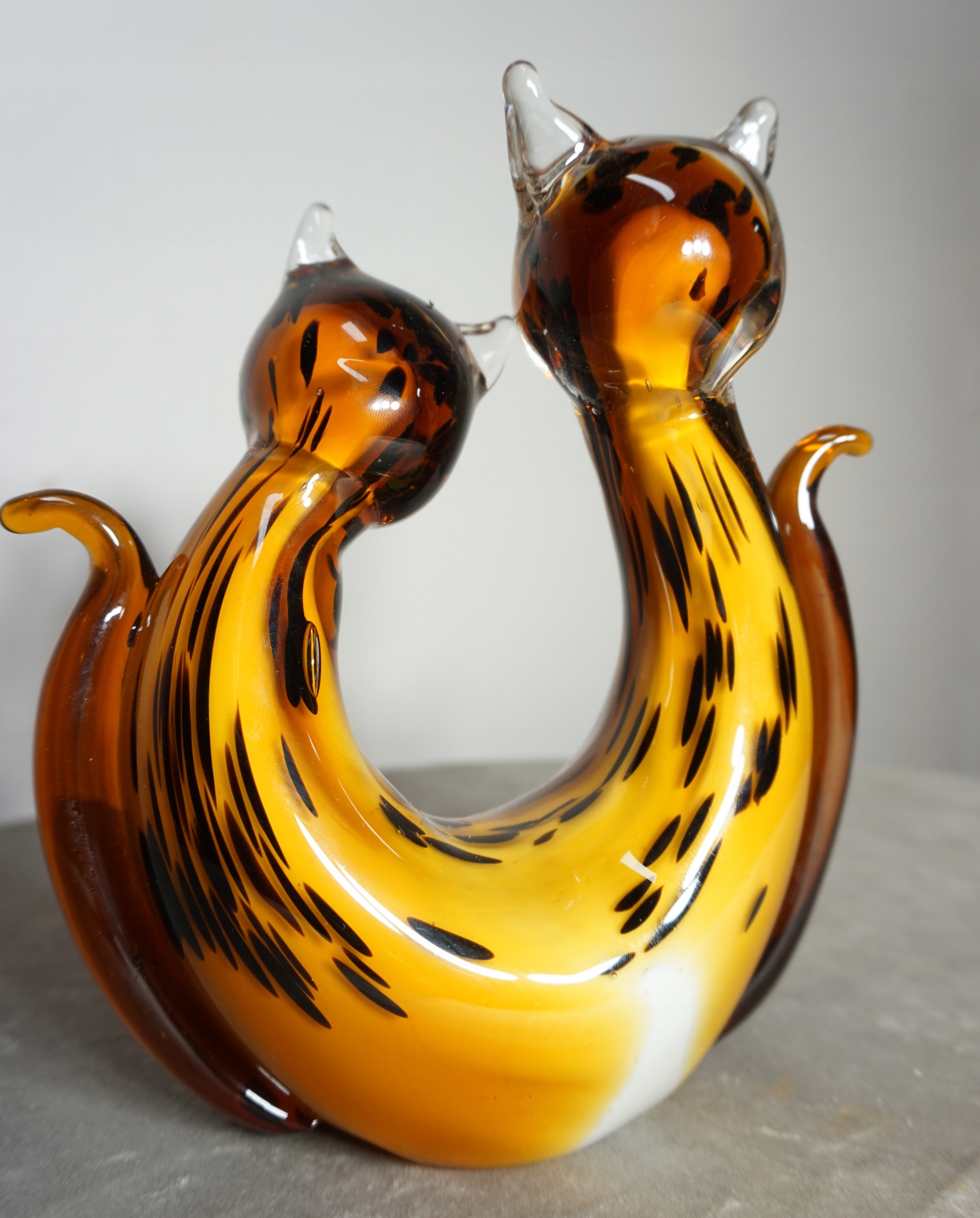 Мы рады представить вас на продажу красивую фигуру из стиля Мурано в форме двух кошек.