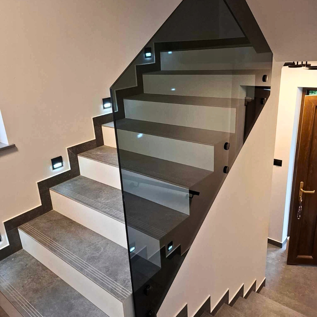 Балюстрады изготовлены полностью из безопасного стекла и идеально подчеркивают современные аранжировки. Вся композиция даст легкость комнаты, откроет пространство и оптически увеличит его.