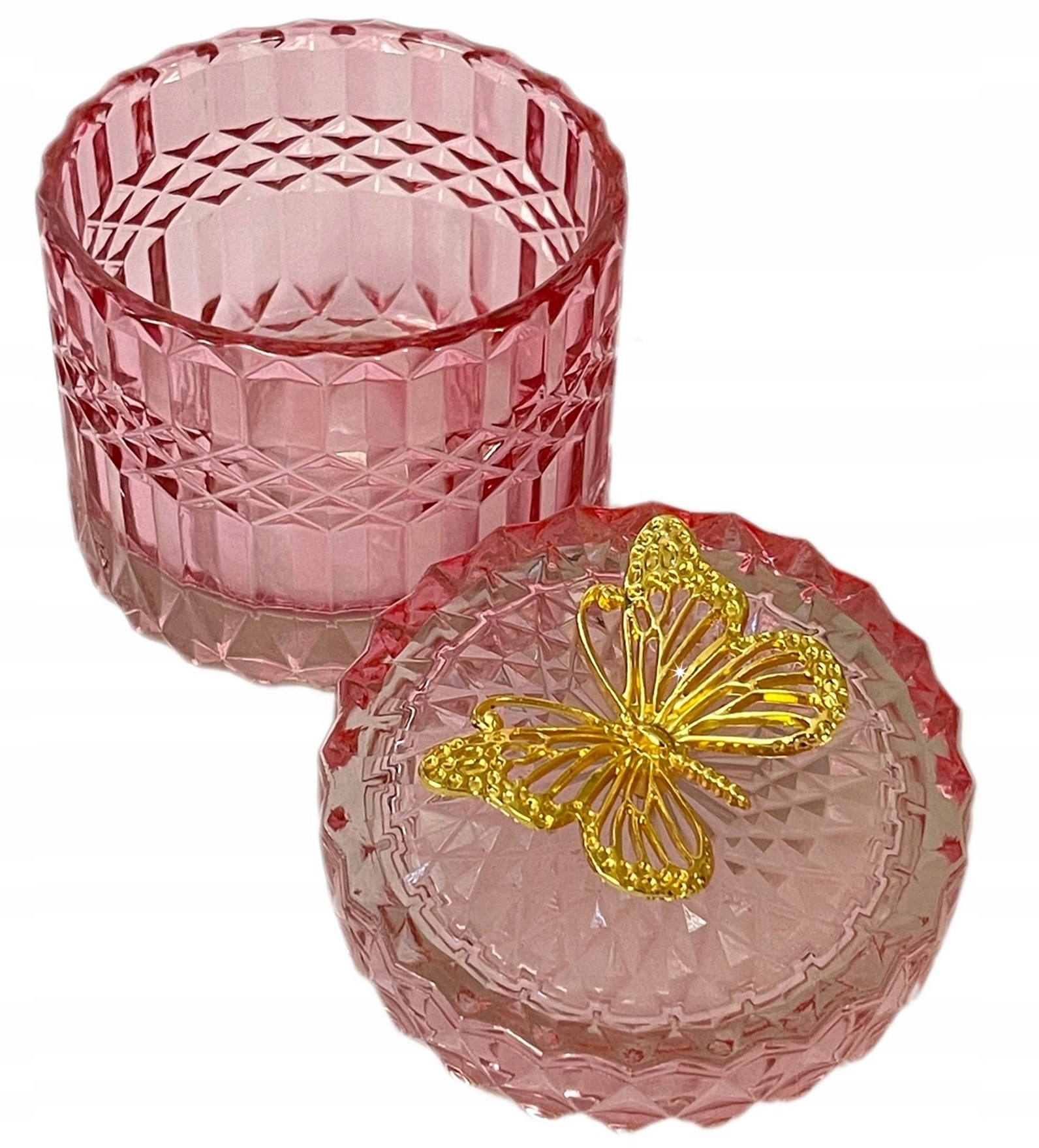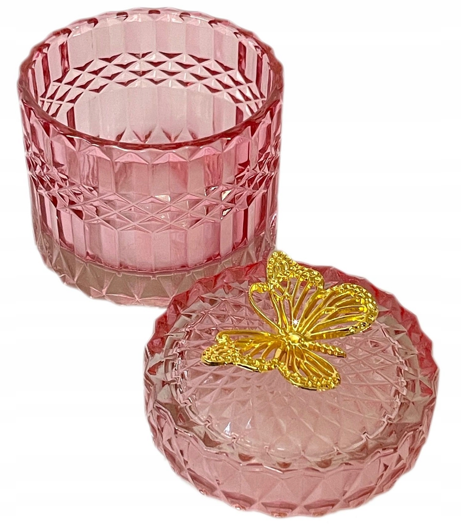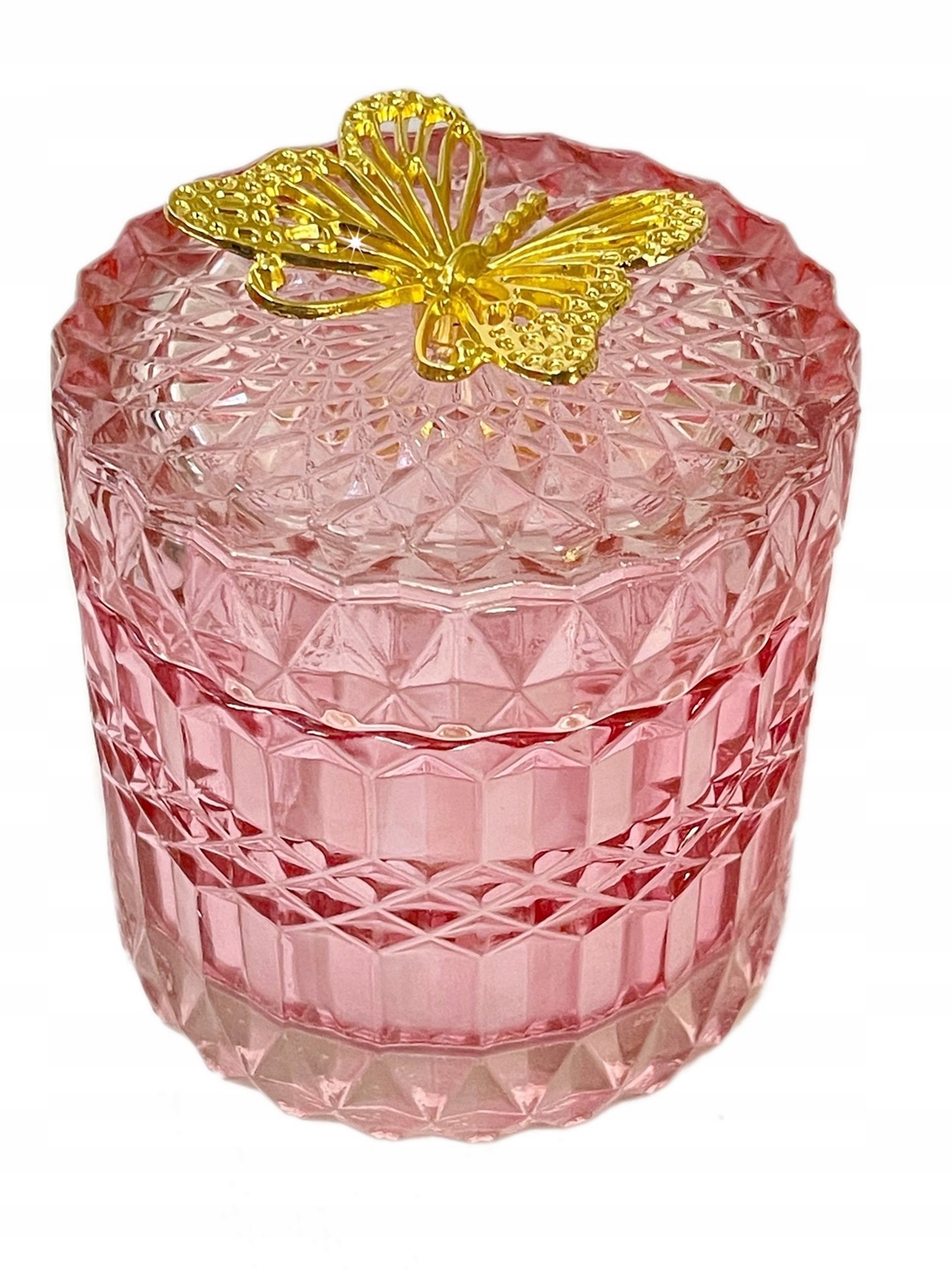 СТЕКЛЯННЫЙ КОНТЕЙНЕР С КРЫШКОЙ ЗОЛОТАЯ БАБОЧКА / РОЗОВЫЙ