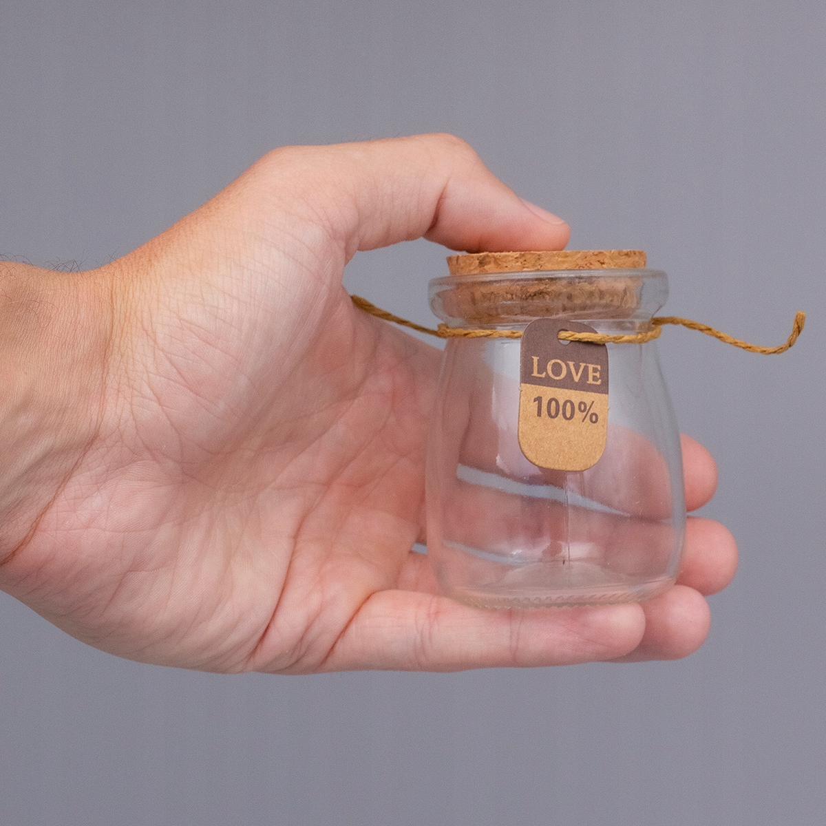 Стильные стеклянные бутылки с натуральной пробкой и этикеткой, идеально подходящие для хранения небольших ювелирных элементов и декоративных материалов. Прозрачное стекло позволяет легко организовать и отображать контент, а прикрепленная метка позволяет обозначить хранимые элементы. - Может использоваться в качестве декоративной упаковки для наборов ручной работы. Сувенир. Стильные контейнеры для организации ваших аксессуаров!