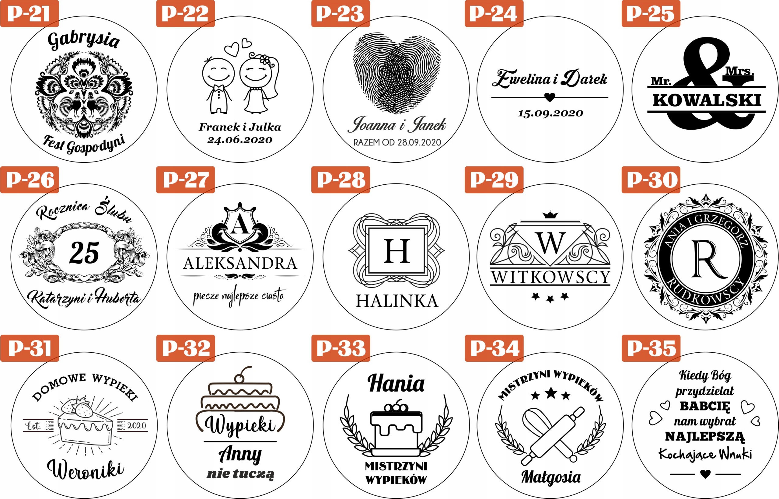 P-04 , Cioci Ania или, например, P-07, Jowita, или, например, P-11, Honorata или например P-30 Ола и Бартек Достоевский (буква в середине шаблона автоматически меняется на первую букву фамилии).