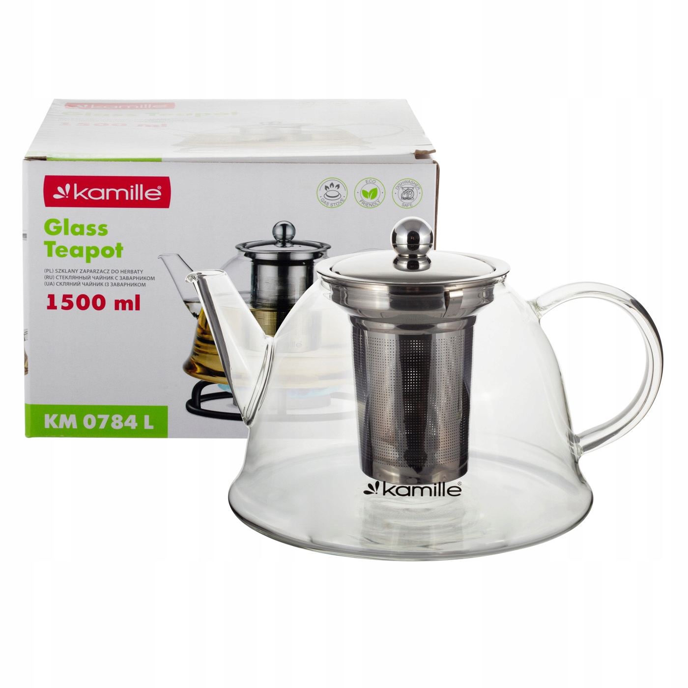 Заварник для чая Kamille из высококачественной нержавеющей стали и термостойкого и прочного стекла.