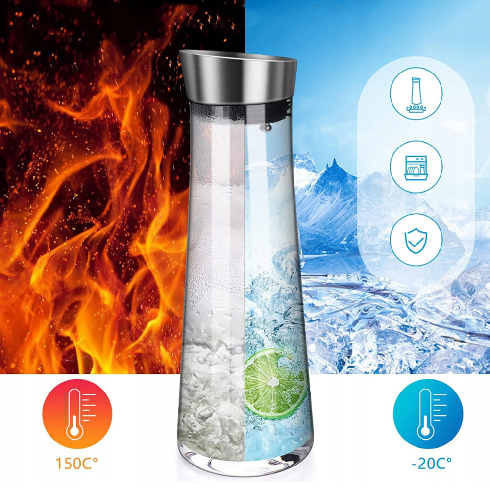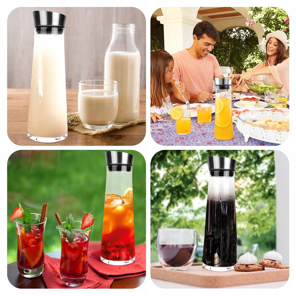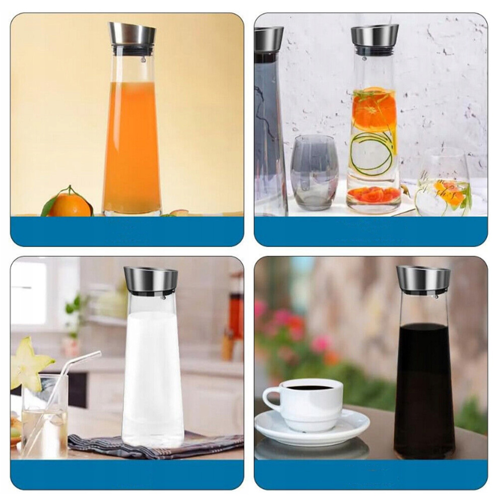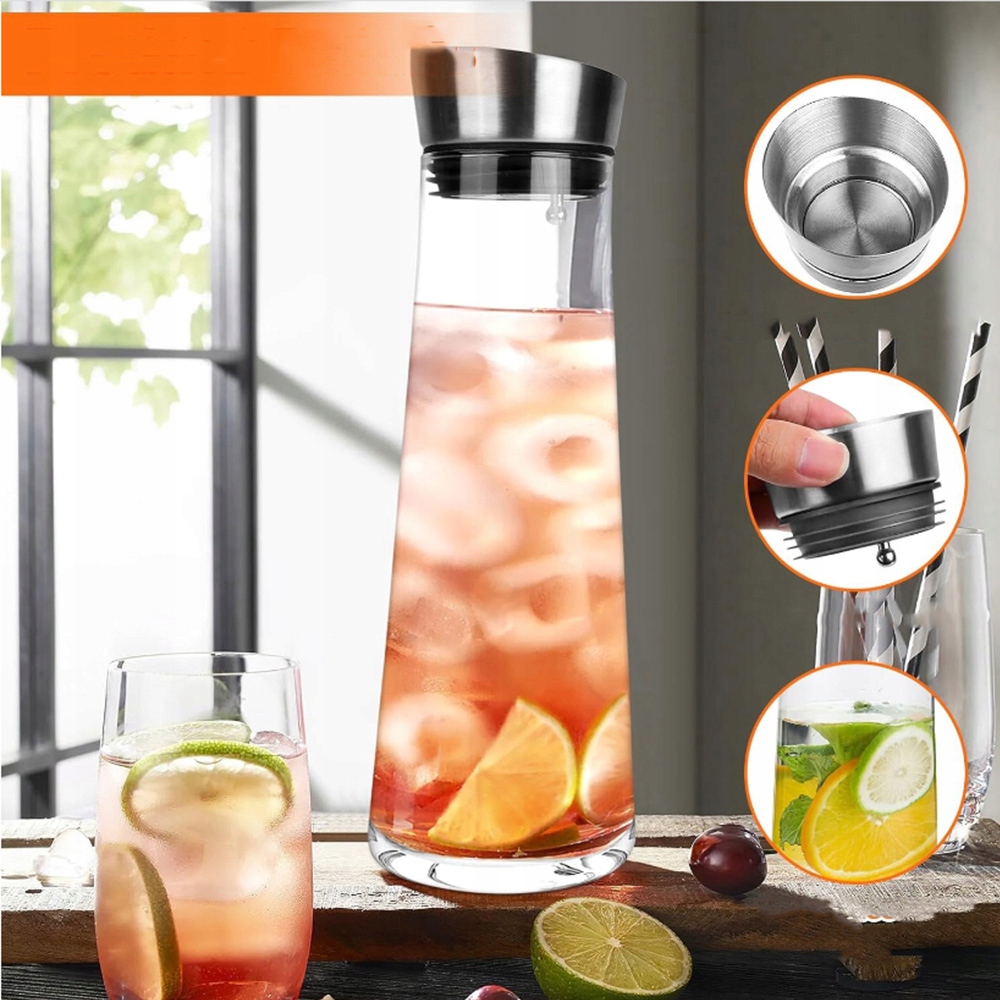 🍹🍹🍹 Высококачественные материалы: , изготовленные из высококачественного неэтилированного стекла и крышки из нержавеющей стали 304. Корпус и дно кувшины были утолщены и укреплены, чтобы обеспечить долговечность и безопасность. Стекло свободнее от BPA и других вредных химикатов, поэтому вы можете наслаждаться водой или другими напитками.