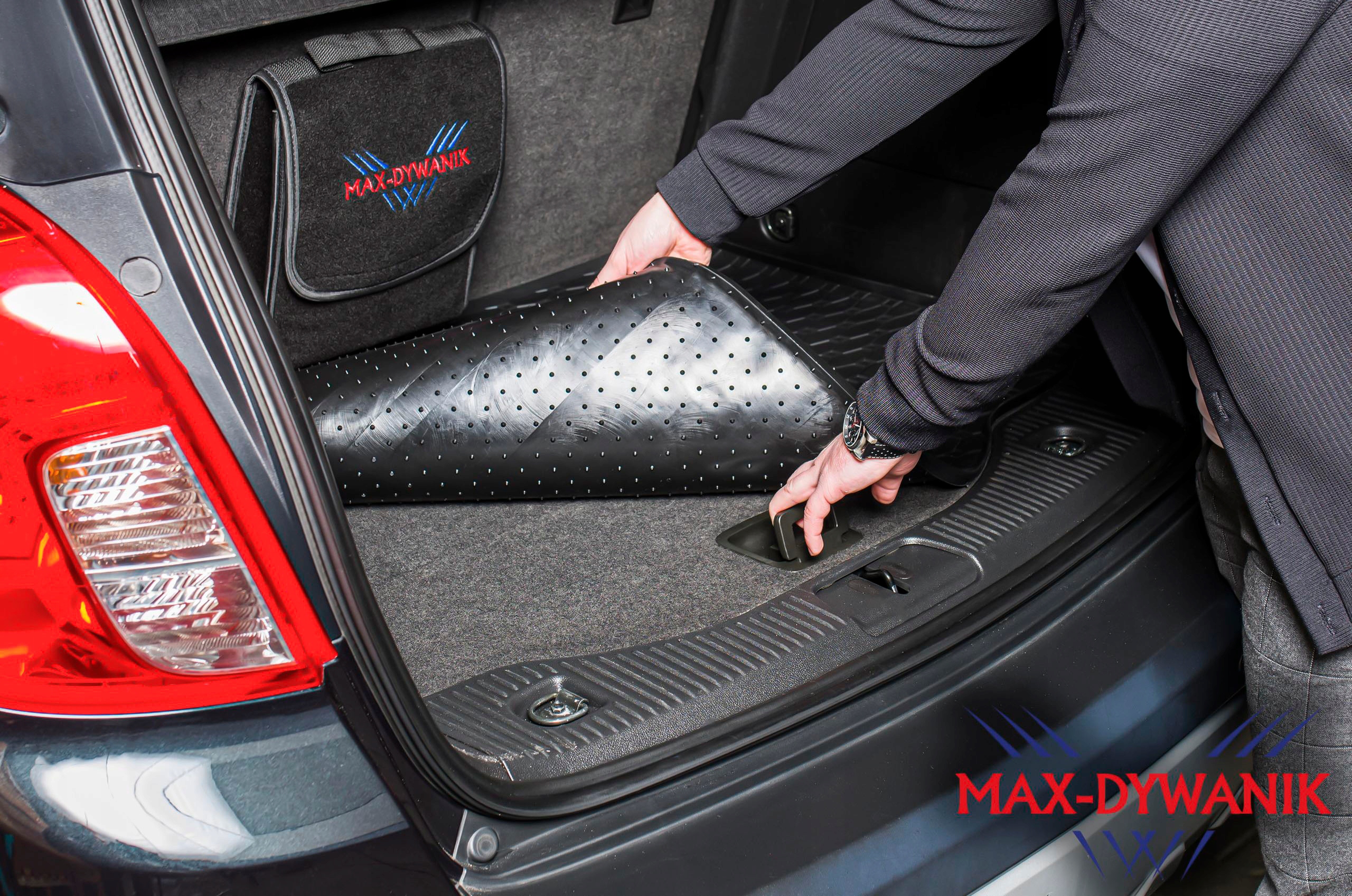 Дополнительным преимуществом предлагаемого коврика является его уникальная гибкость , так что во время использования у нас все еще есть доступность к пространству под сундуком (возможность поднять полку для доступа к местам для хранения или запасного колеса) или вытягивающего коврика из багажника, чтобы очистить ее. Вставка багажа идеально защищает всю поверхность багажного пространства, защищая оригинальную обивку от грязи или наводнения . Деликатный защитный край идеально подходит для краев обивки, благодаря которой коврик идеально подходит.