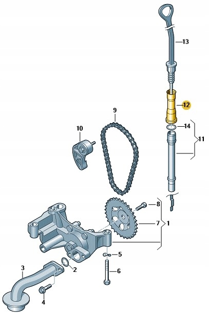 - 1x 06A103663C (Масляный щуп, позиция № 12 на схеме)