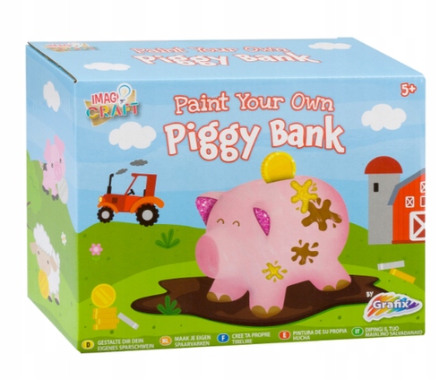 Содержимое: 1 копилка, 6 баночек с красками, 2 тюбика с блестками, 1 кисть.