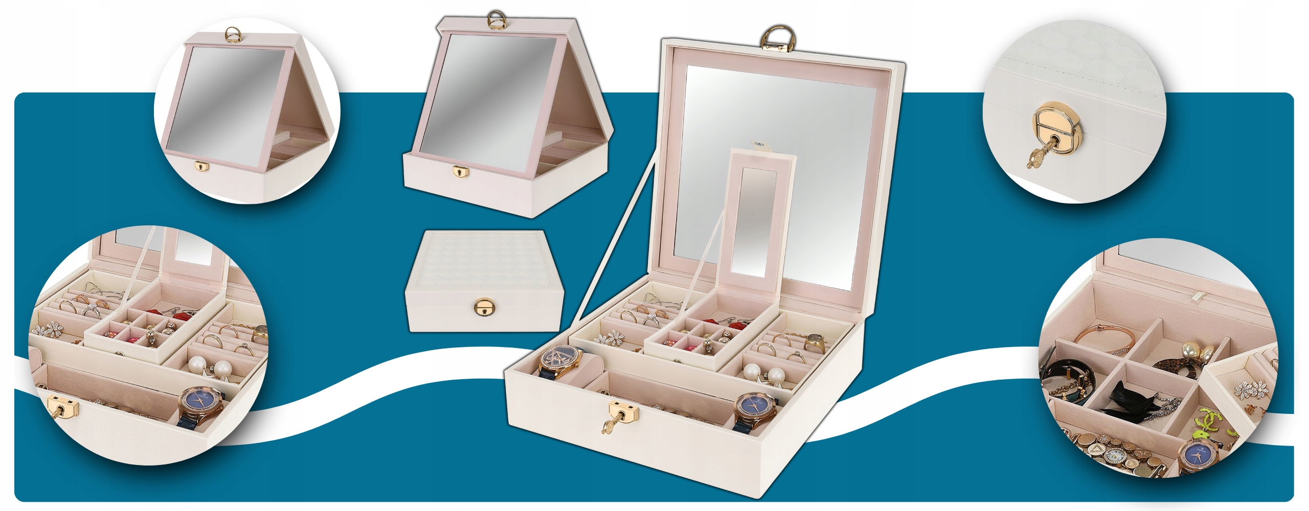 Вместительная шкатулка для драгоценностей с замком – идеальное решение для хранения ваших ценностей. Множество отделений, зеркало и съемная шкатулка сохранят вашу коллекцию в порядке и сохранности.