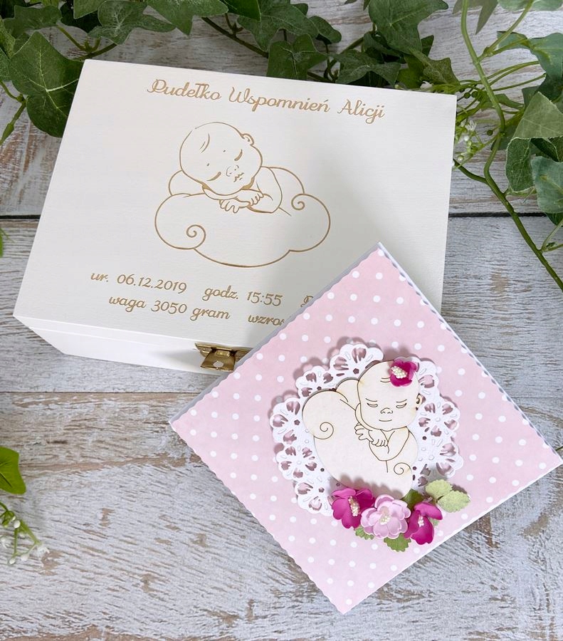Коробка воспоминаний - белый узор P024 + ПЕРСОНАЛИЗАЦИЯ + открытка ручной работы