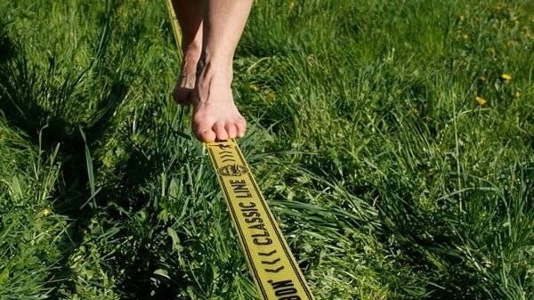 Slackline идеально подходит для игры в саду как для детей, так и для взрослых.