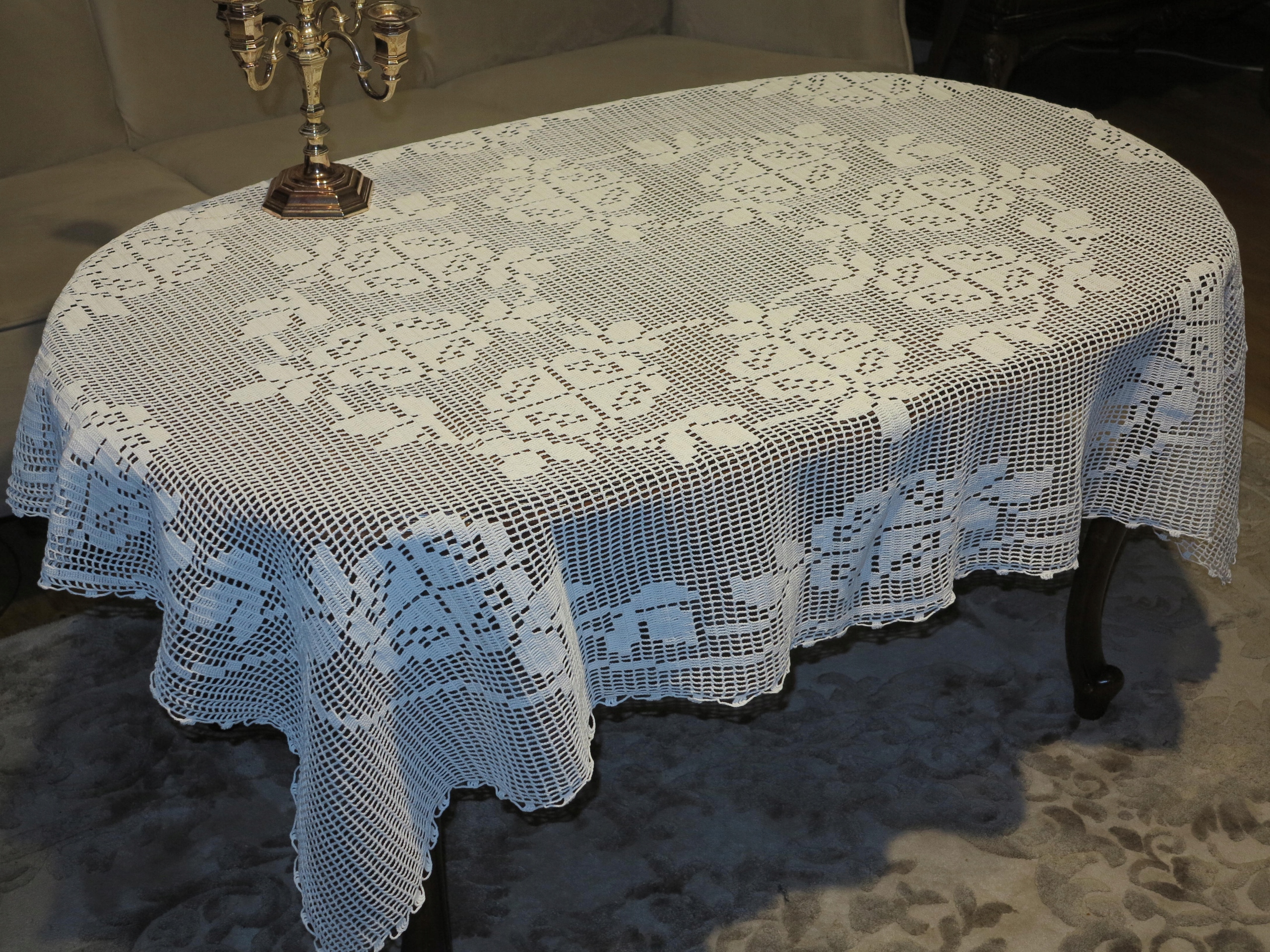 Объект аукциона - красивая, вязаная скатерть, вязаная ручная. Он имеет размеры: 156/104 см. Используется скатерть, в супер хорошем состоянии и качестве. Я рекомендую