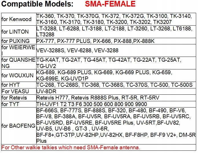 Под списком разъемов, появляющихся на радиоприемниках SMA и SAM-M: