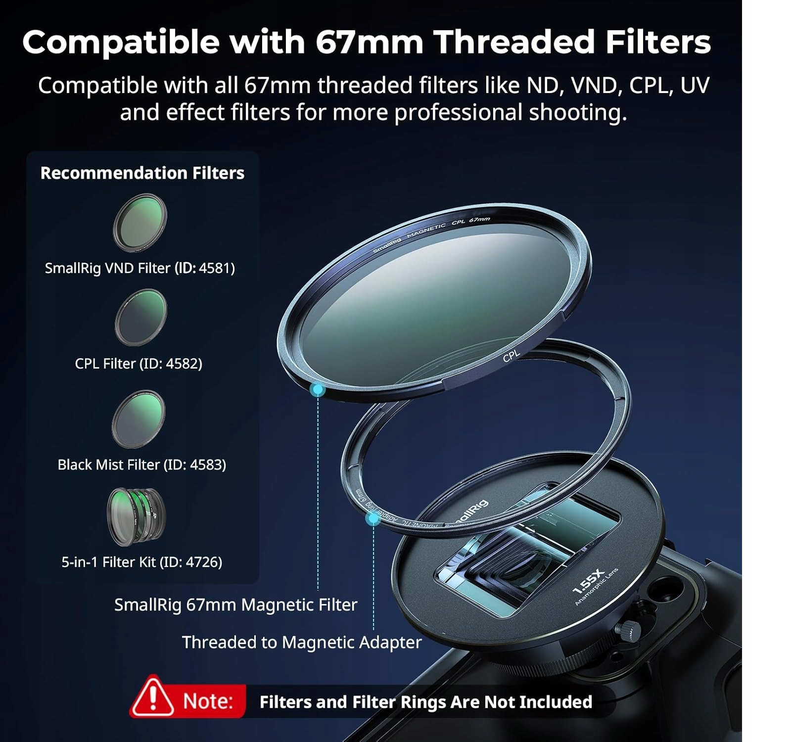 - 【Совместим с 67 -миллиметровым резьбовым фильтрами】 Panoramic Cinema Lens Smallrig 3578B совместим со всеми 67 -миллиметровыми резьбами, такими как ND, VND, CPL, UV и эффекты, которые обеспечивают большую профессиональную фотографию. Для оптимальных результатов мы рекомендуем использовать фильтры Smallrig 4581/4582/4583 в сочетании с этим объективом. Пожалуйста (примечание: фильтры не включены)