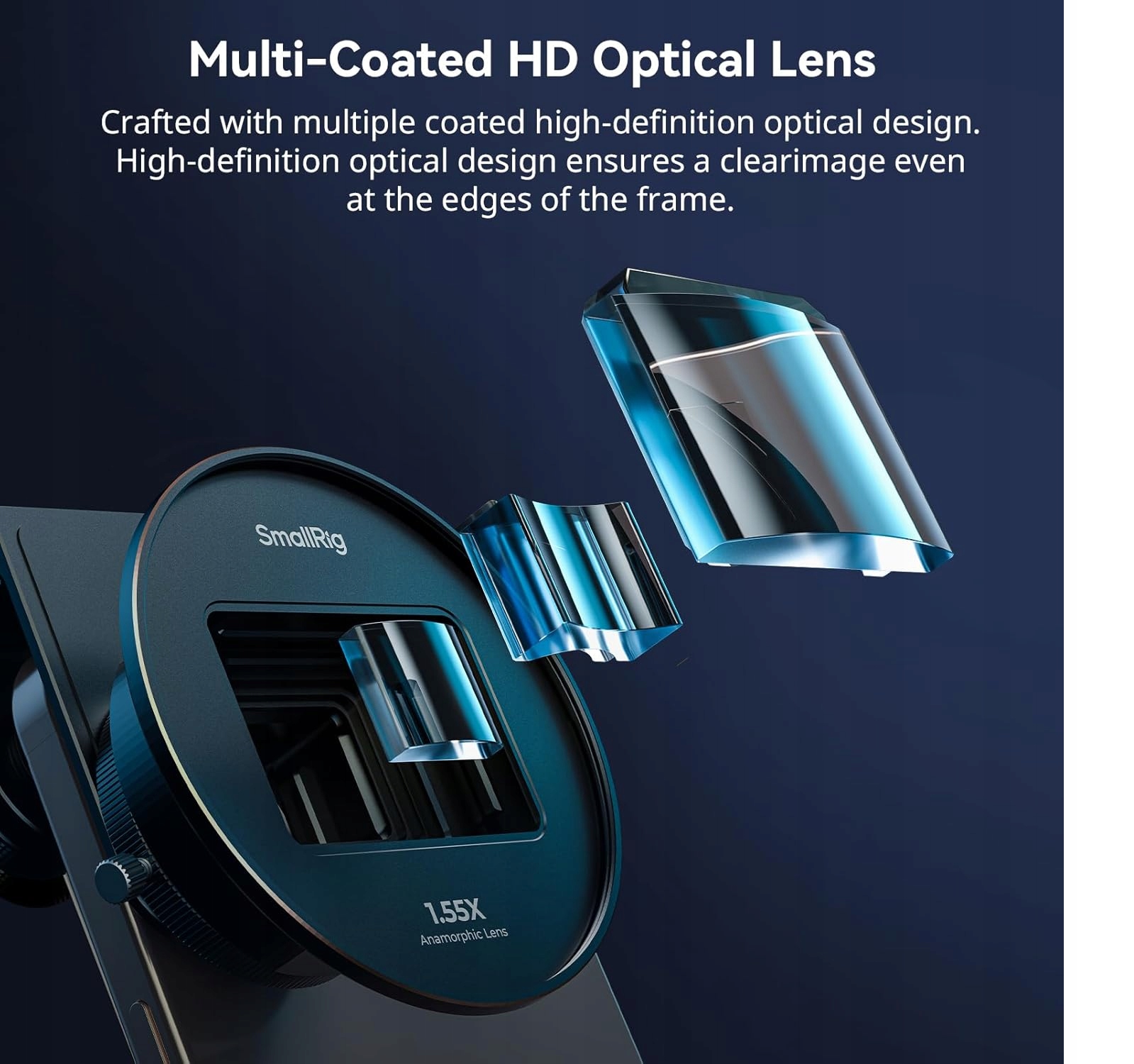 smallrig 3578b 1,55xt Анаморфная линза для телефона, панорамный кинотеатр Blue Flare 2.76: 1 в телефонную клетку с креплением T, анаморфным объективом с клипком для iPhone 15 14 13 12 Series - 3578B