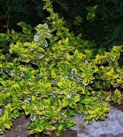 Вечнозеленый, стелющийся кустарник со свисающими побегами. Листья темно-зеленые с доминирующим желтым краем. Лучше всего растет в полутенистых местах, хотя может переносить и солнце. Переносит все окультуренные садовые почвы. Может расти под кронами крупных деревьев и подниматься на высоту около 2 м.