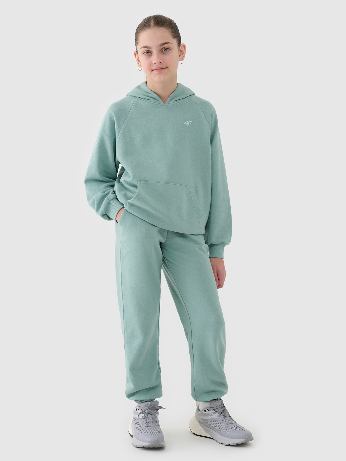 4f Sweat Antry 'Joggers-turquoise h2> Auction предназначен для размера 128 (7-8 лет), йоги для девочек идеально подходят как элемент как повседневных, так и спортивных стилизаций каждый день. У них есть обычный порез, который удобно адаптируется к фигуре, и сужаемые ноги заканчивались эластичной эластичной полосой. С одной стороны, французская ткань турого трюка гладко, а с другой - видимое плетение в виде петли.
