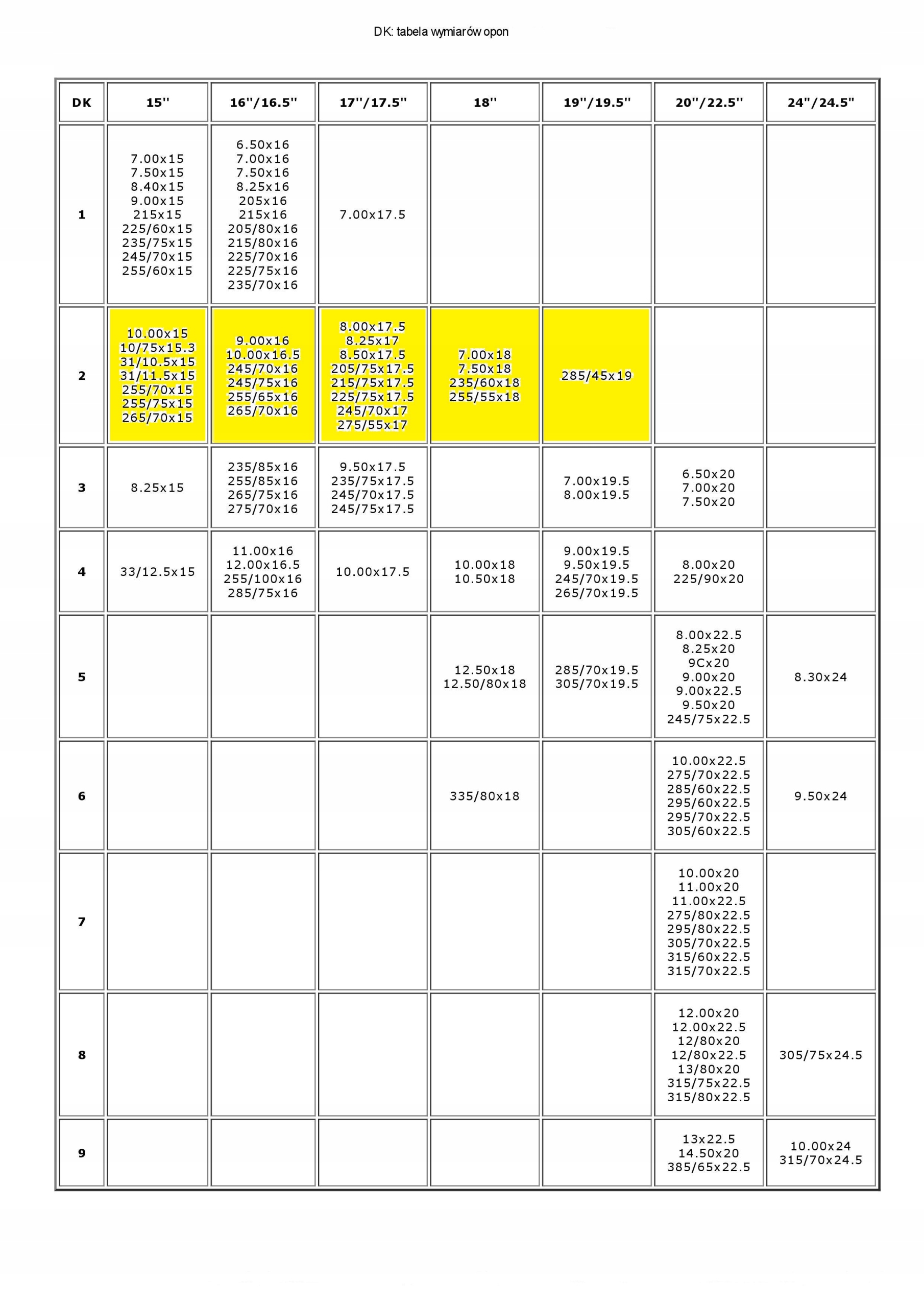 (таблица размеров шин ниже на желтом фоне) <пункт: