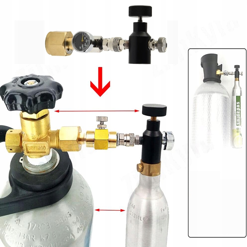 Мы представляем надежный переливание для заполнения картриджей SodaStream 425G , который оснащен манометом давления для точного считывания давления в цилиндере. przechoczek облегчает контролируемое заполнение благодаря функциональному клапану для регулировки открытия, что позволяет плавно управлять потоком CO2. Благодаря интегрированному вентиляции пользователь может безопасно снизить давление в устройстве.