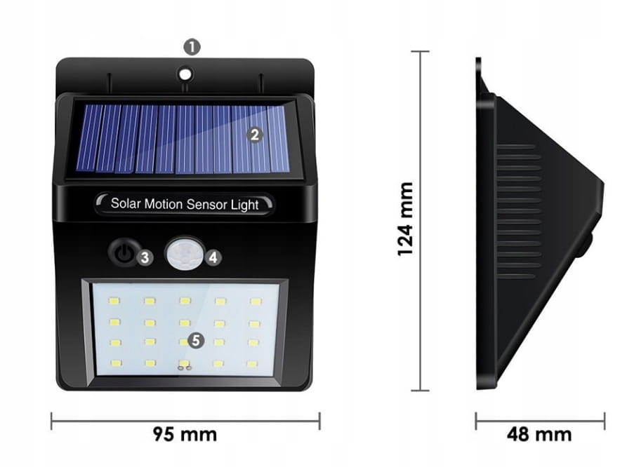Солнечная лампа 20 светодиодов с датчиком освещенности и чувствительным датчиком движения в качестве дополнительного освещения.