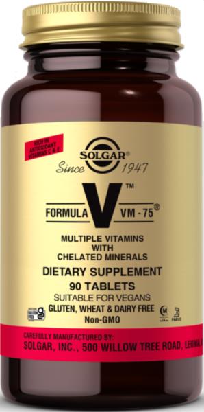 Formula VM 75 — поливитаминный и минеральный препарат, который используется уже много лет и является обладателем ценных наград в индустрии натуральных витаминов, минералов и трав. Очень удобно использовать, поскольку таблетку принимают один раз в день. Каждая таблетка содержит набор витаминов в чрезвычайно легкоусвояемых формах и очень большое количество антиоксидантов. Большинство минералов являются хелатными аминокислотами, что обеспечивает их лучшее усвоение. Каждая таблетка также содержит биофлавоноиды, натуральный бета-каротин со смесью каротиноидов, пищеварительные ферменты и специально измельченную растительную основу. Пищеварительные ферменты не только обеспечивают лучшее усвоение веществ, содержащихся в таблетке, но и веществ из ежедневного рациона.